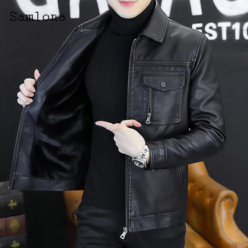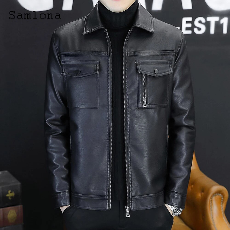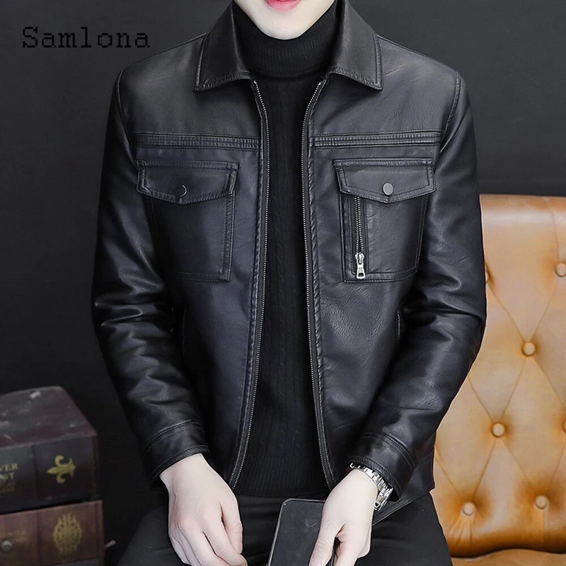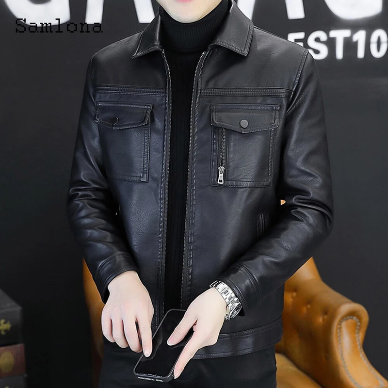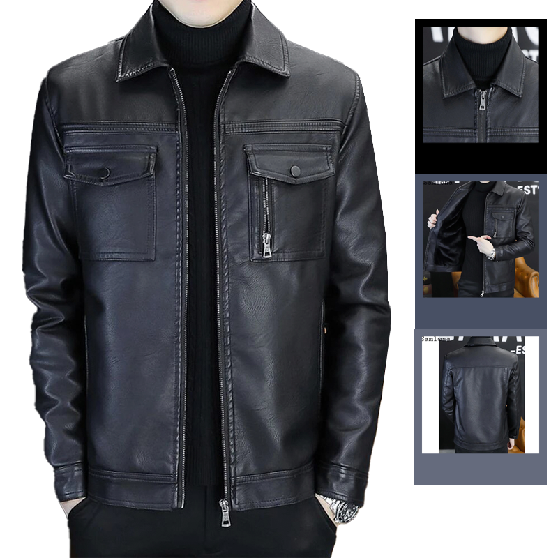 Áo Khoác Da Nam Cổ Bẻ Lót Vải Dù Phối Túi Hai Bên Cao Cấp (Có size to 3x)
