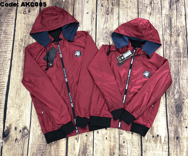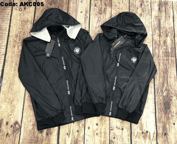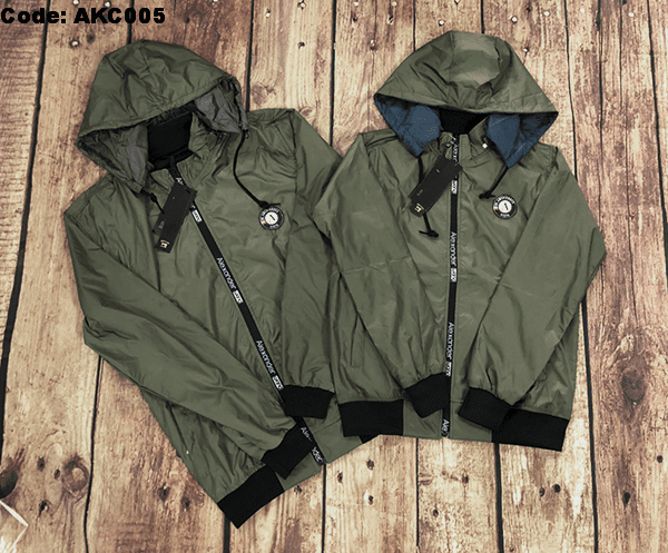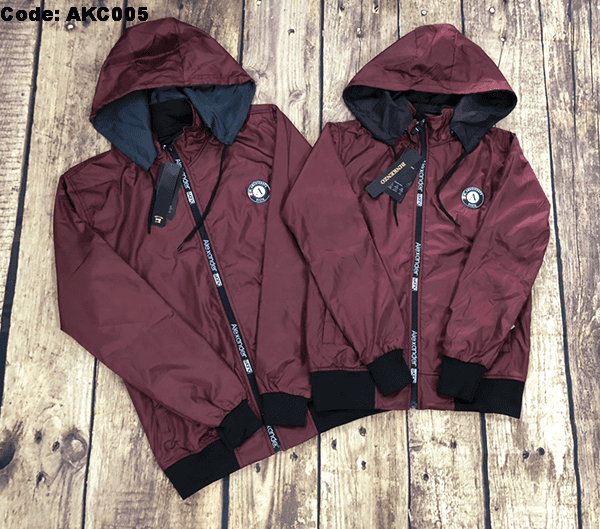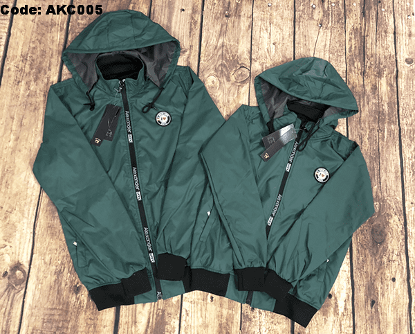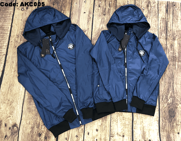 Áo khoác cặp được thiết kế cổ cao, có nón tháo rời, tay dài, dây kéo khóa kéo cao che nắng phần cổ áo cực tốt. 2 túi ngoài có dây kéo chắc chắn.