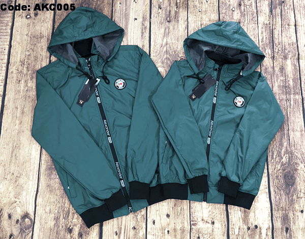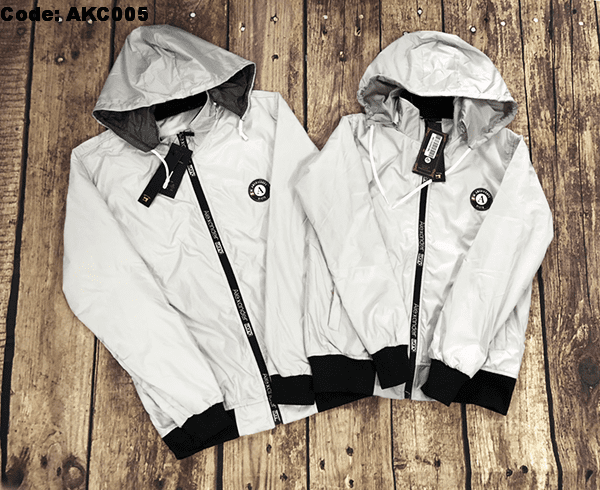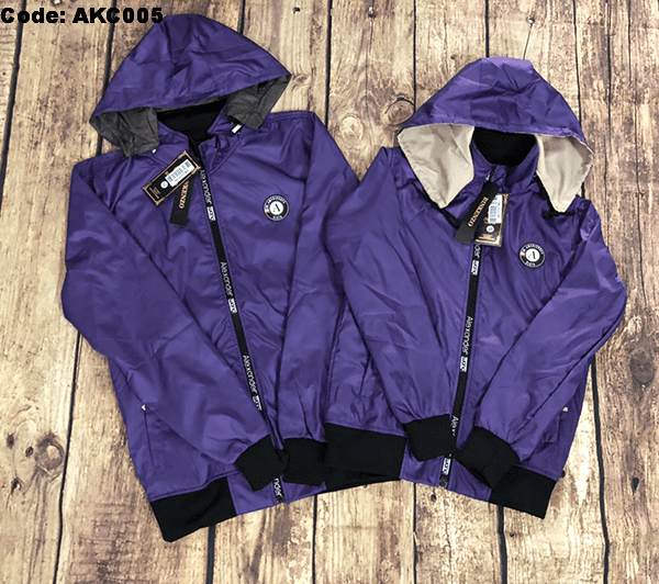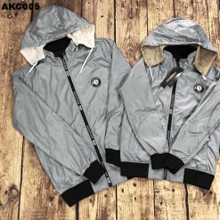 Áo khoác dù đôi nam nữ phối nón rời kết logo tròn