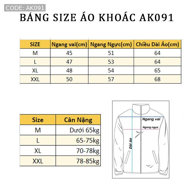 Có 4 size để lựa chọn: M(55-65kg), L(65-75kg), XL(70-78kg), XXL(78-85KG). Bạn có thể chọn size phù hợp với cân nặng của mình để có được chiếc áo vừa vặn nhất.