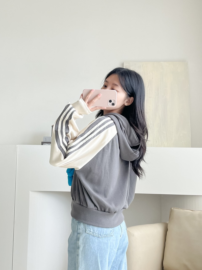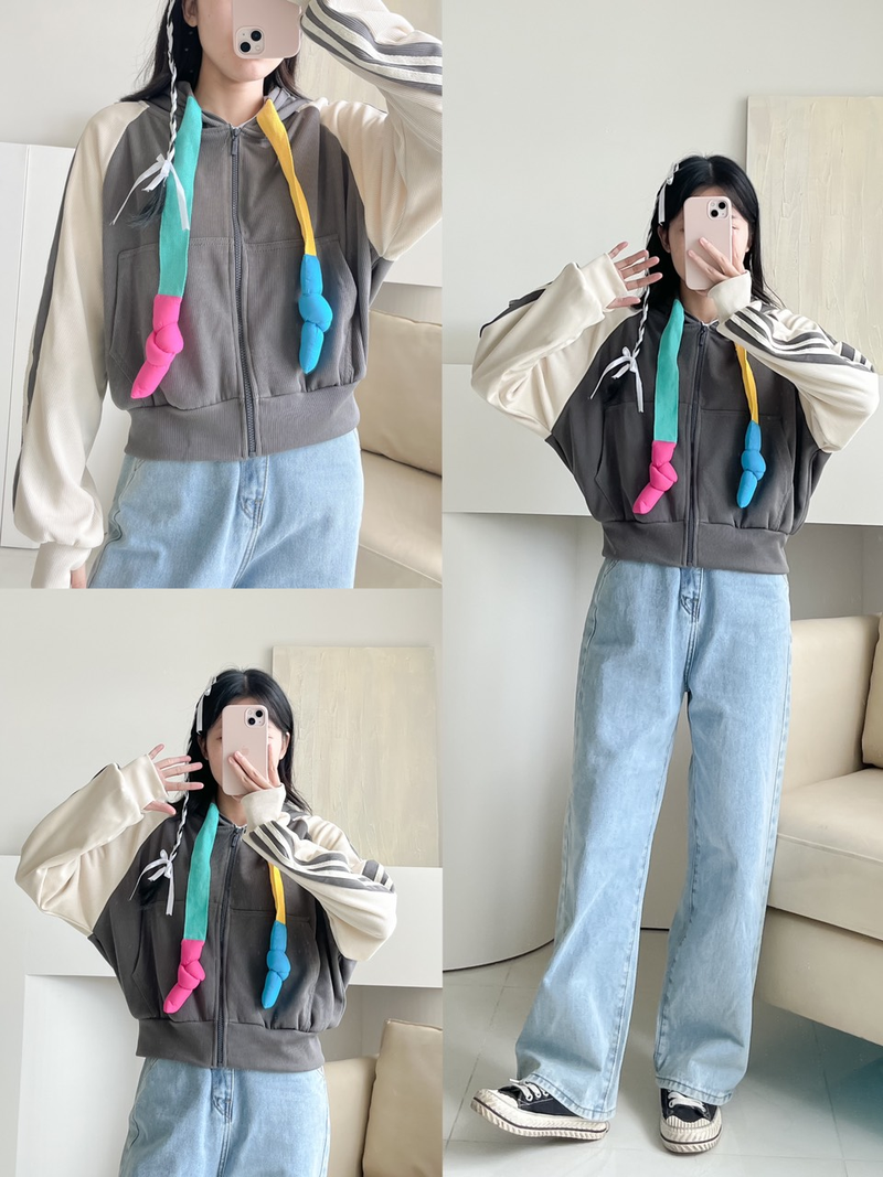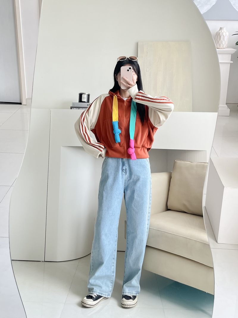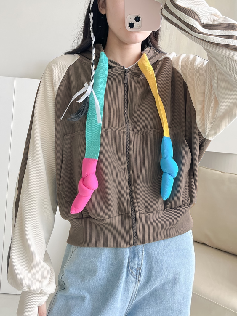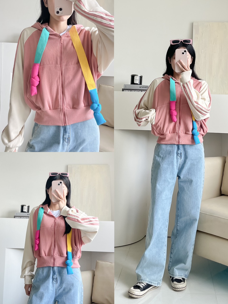 Áo khoác nữ lửng viền sọc phối dây màu cầu vòng bản to
