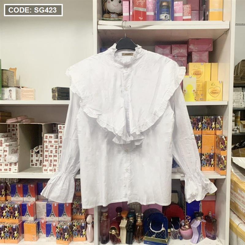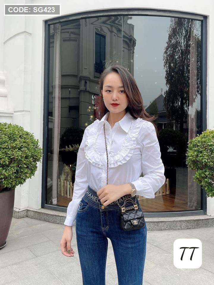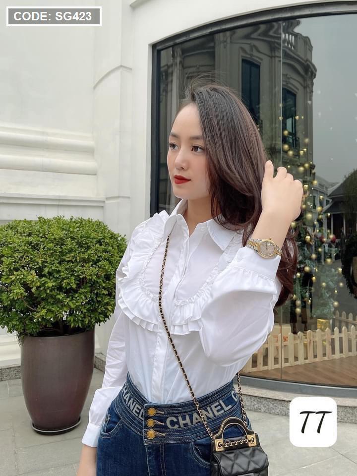Áo sơ mi trắng nữ tay dài phối bèo