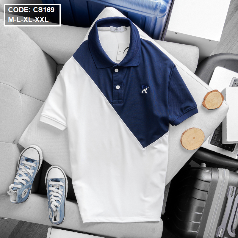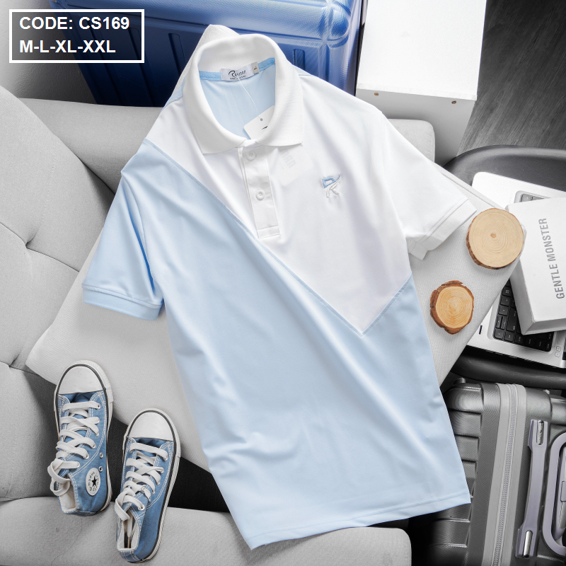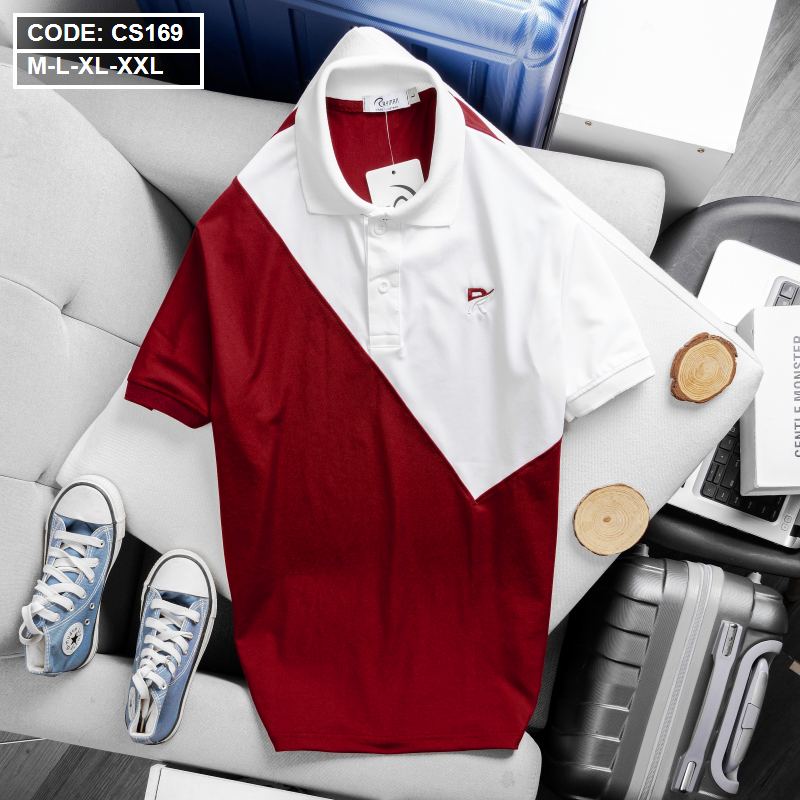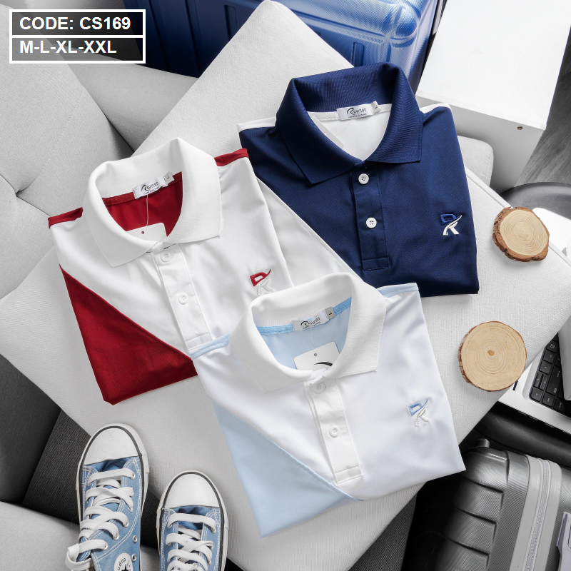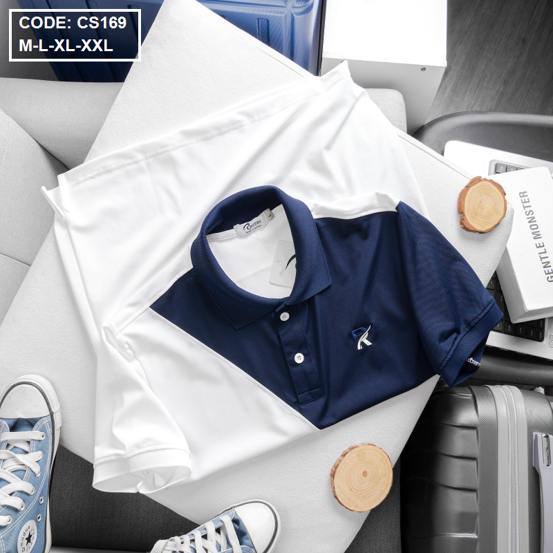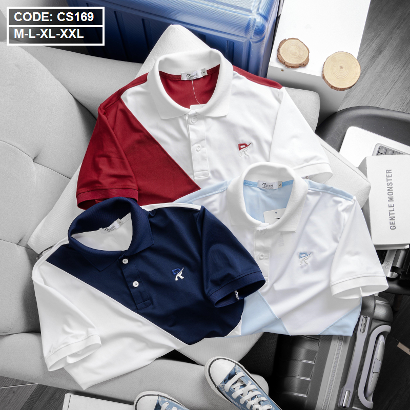 Áo Thun Nam Cá Sấu Có Cổ Phối 2 Màu Thêu Logo