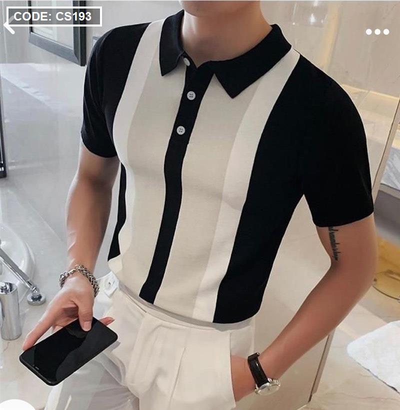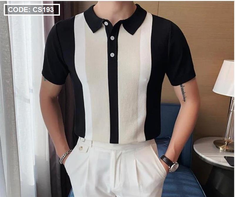 Áo thun nam cá sấu poly sọc đứng cổ điển (có size 3x)