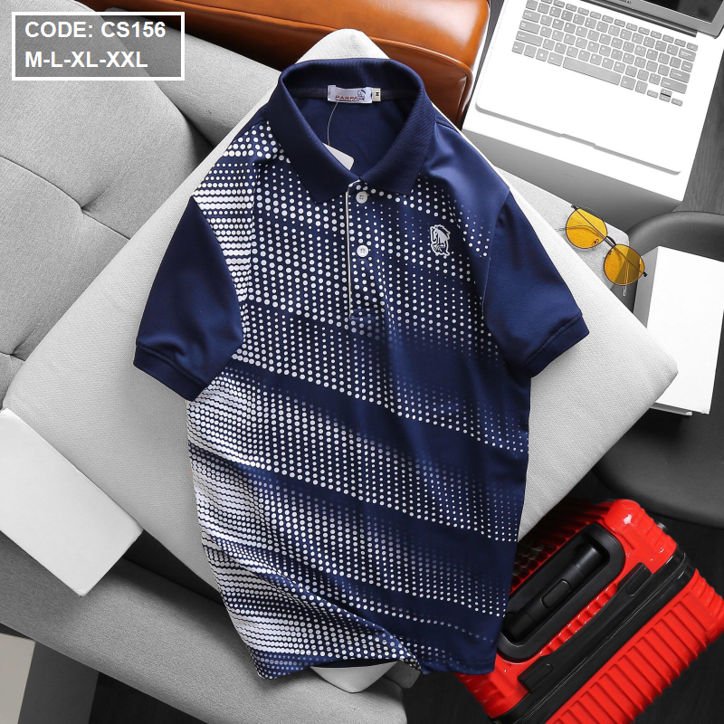 Áo thun nam cổ bẻ chấm bi