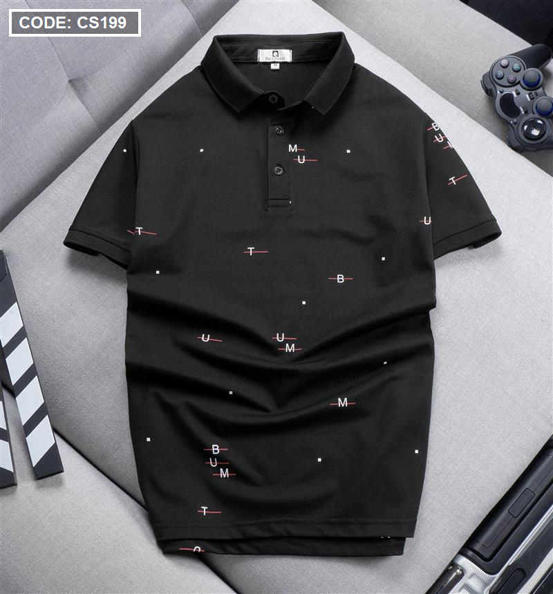 Áo Thun Nam Cổ Bẻ In Hoạ Tiết Chữ (Có Size 3x)