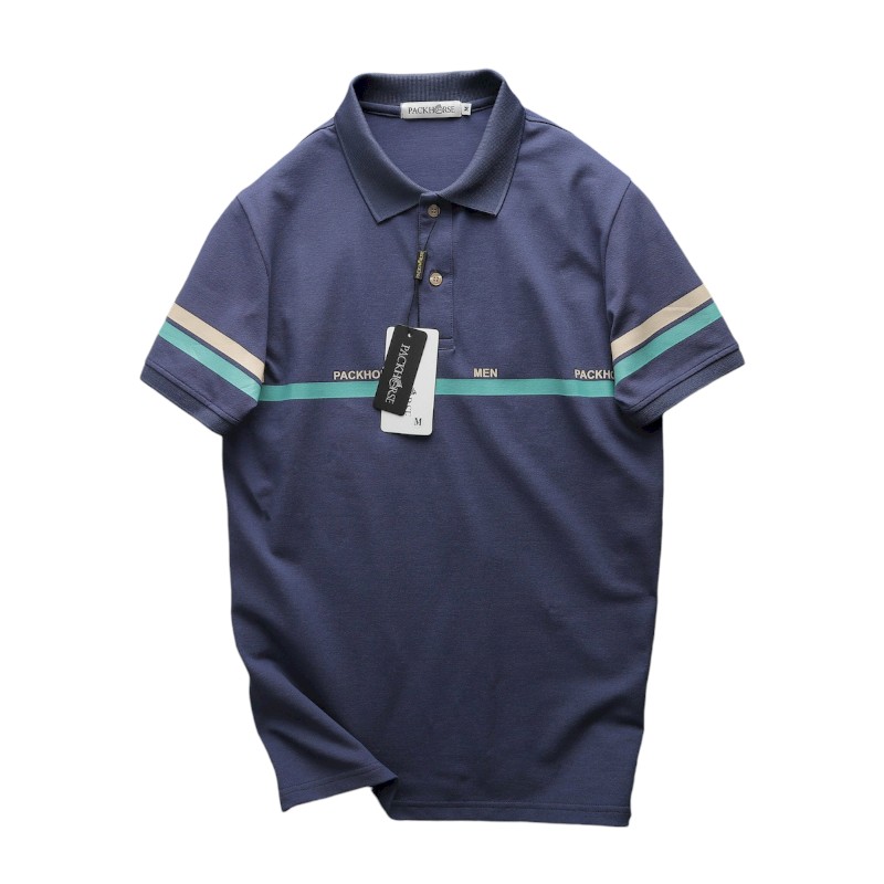 Áo Thun Nam Cổ Bẻ Pack Horse Viền 2 Sọc (Có Size 3x)