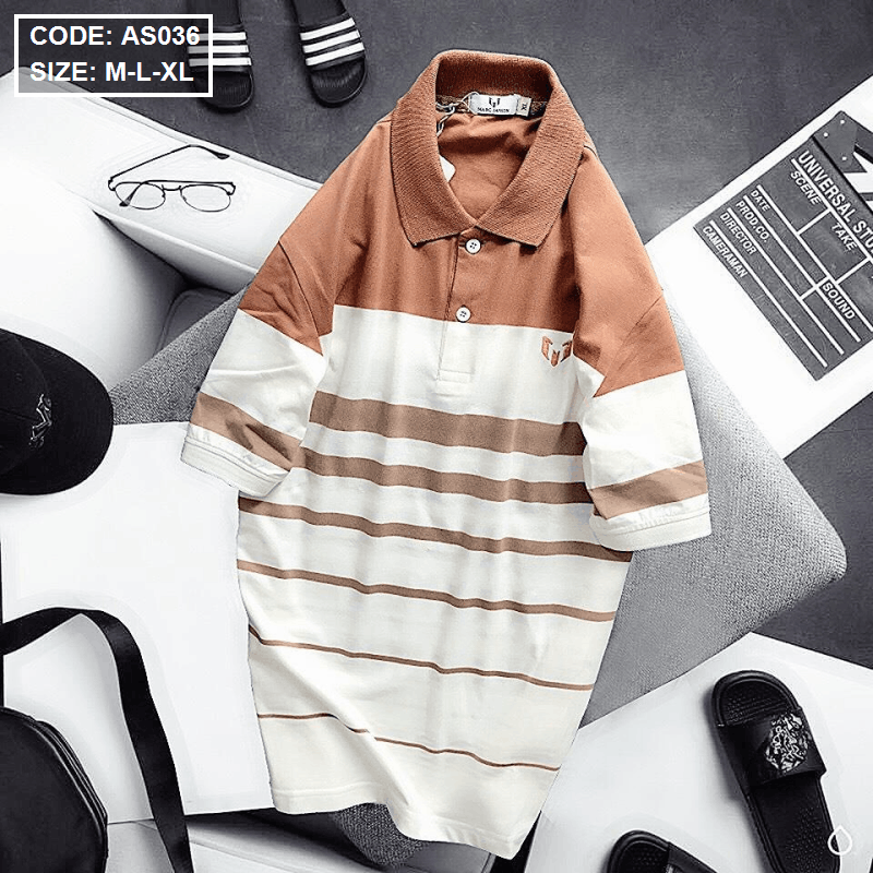 Áo Thun Nam Có Cổ Phối Sọc Ngang Có Túi