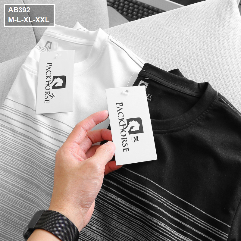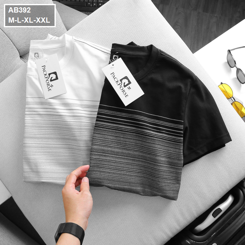 Áo Thun Nam Cổ Tròn 2 Màu In Sọc Ngang Ngực (Có Size 3XL)