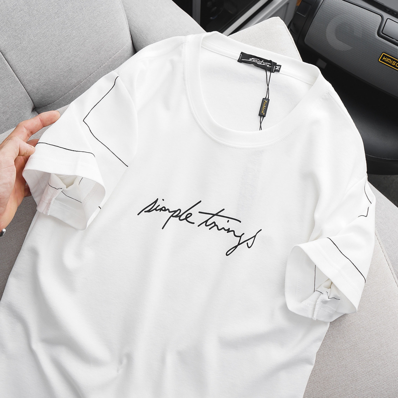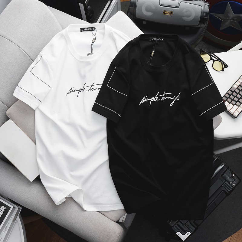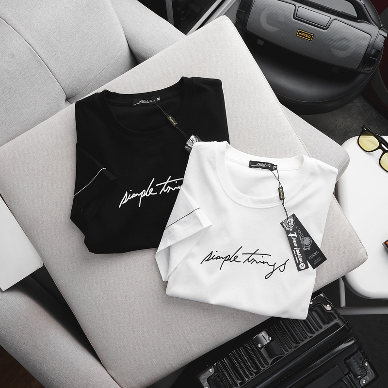 Áo Thun Nam Cổ Tròn In Chữ Simple Things Tay Viền Sọc (Có size 3x)