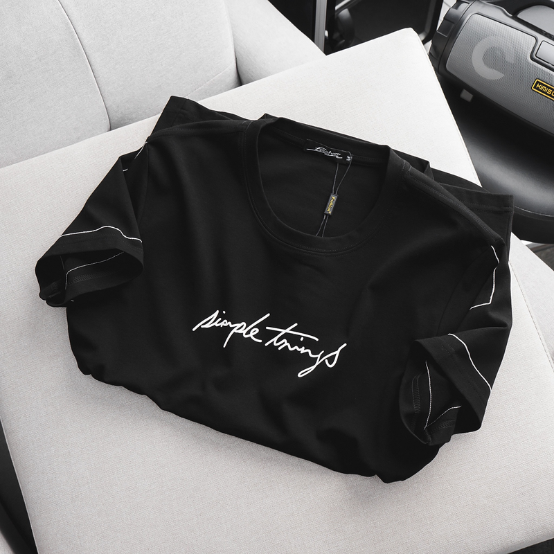 Áo Thun Nam Cổ Tròn In Chữ Simple Things Tay Viền Sọc là một sản phẩm thời trang nam đầy phong cách và trendy. Với chất liệu thun cotton 100%, áo mang lại sự mềm mại, thoải mái và đảm bảo sự thông thoáng cho người mặc.