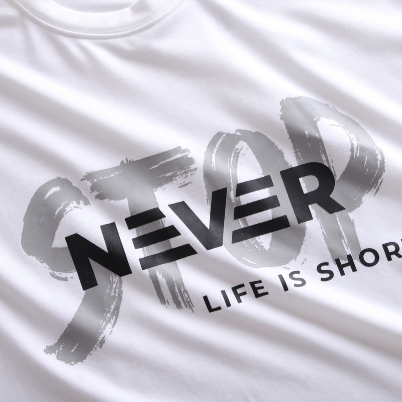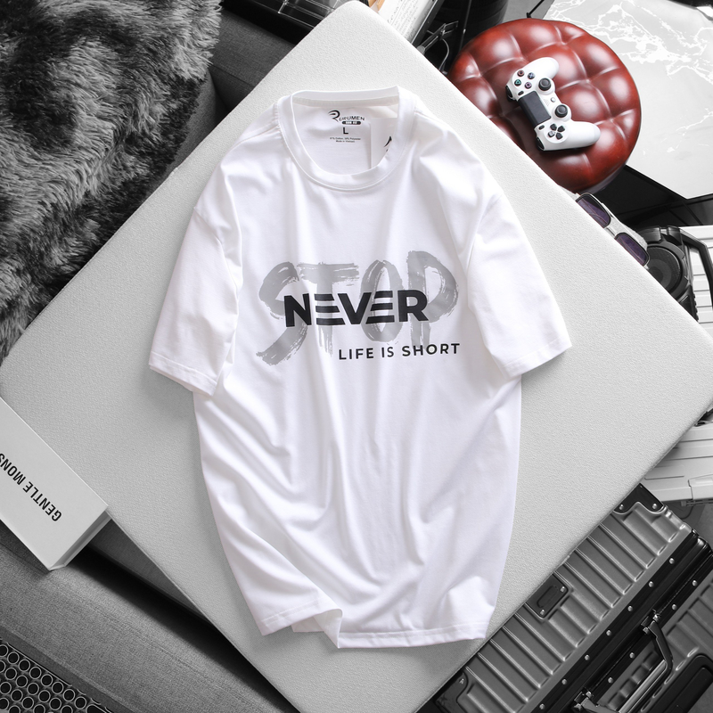Áo Thun Nam Cổ Tròn Rurumen Màu Trắng In Chữ Never Big Size