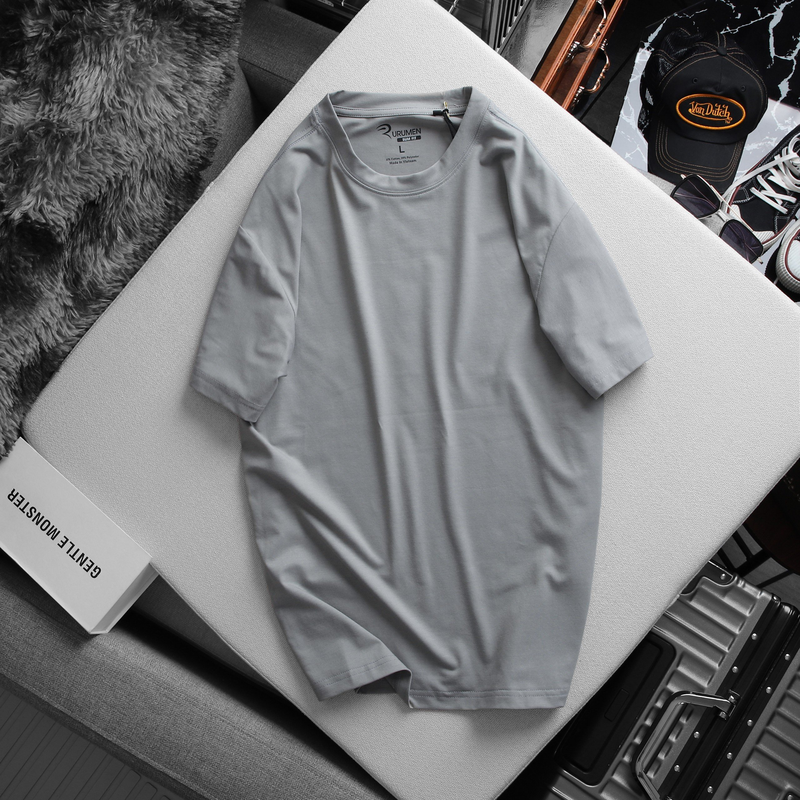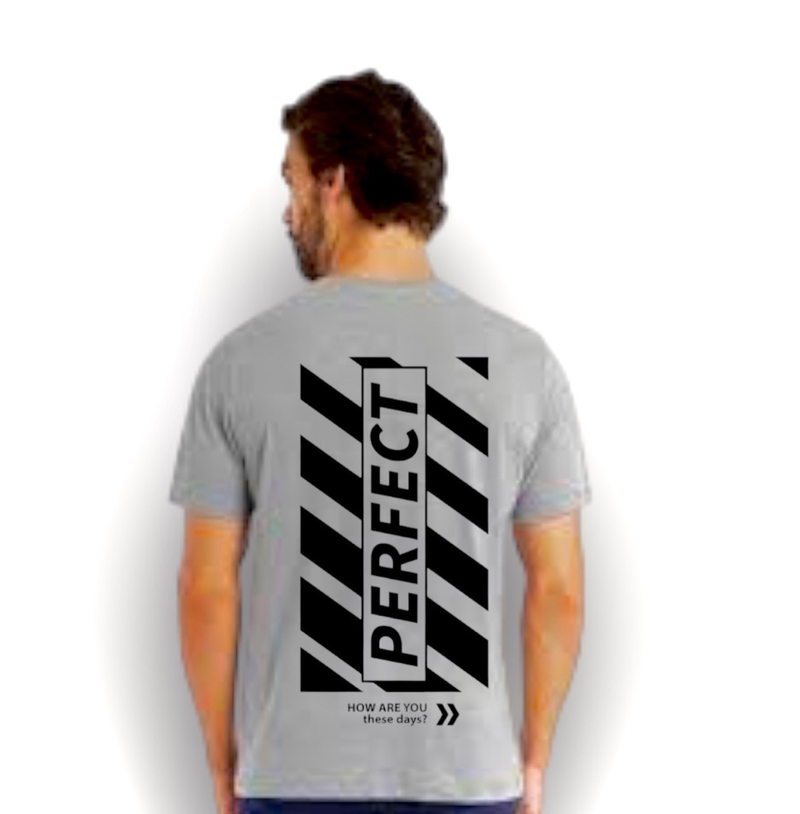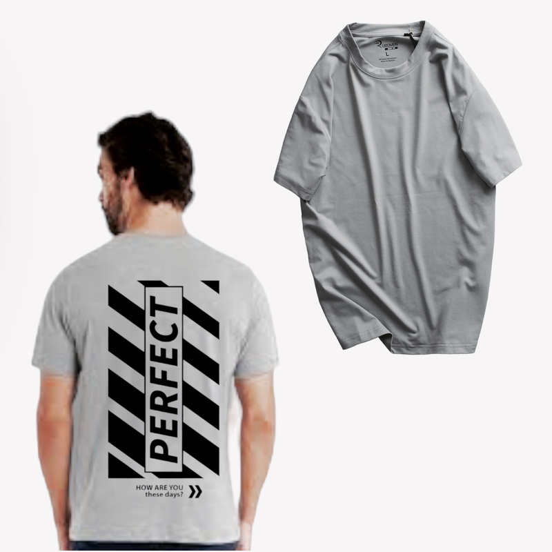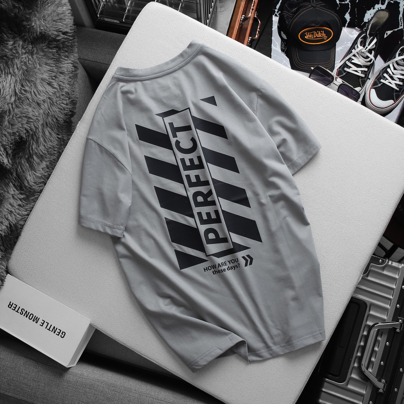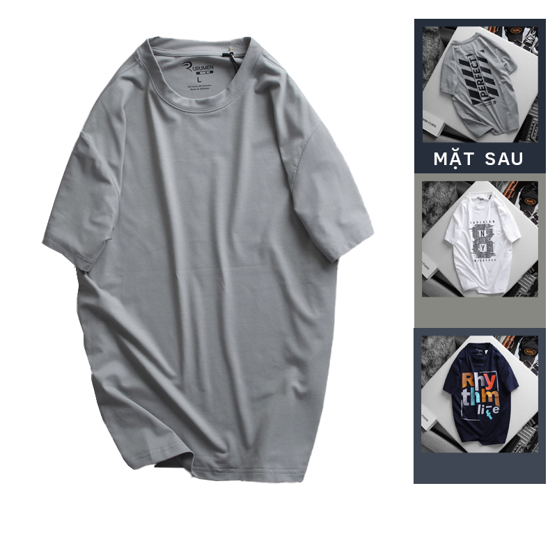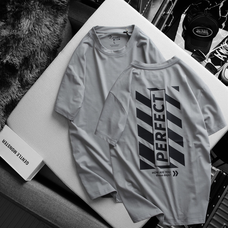 Áo Thun Nam Cổ Tròn Rurumen Màu Xám In Chữ Perfect Mặt Sau Big Size