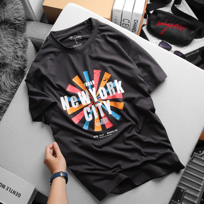 Áo Thun Nam Cổ Tròn Rurumen Màu Xám In Hình NEW YORK CITY Big Size