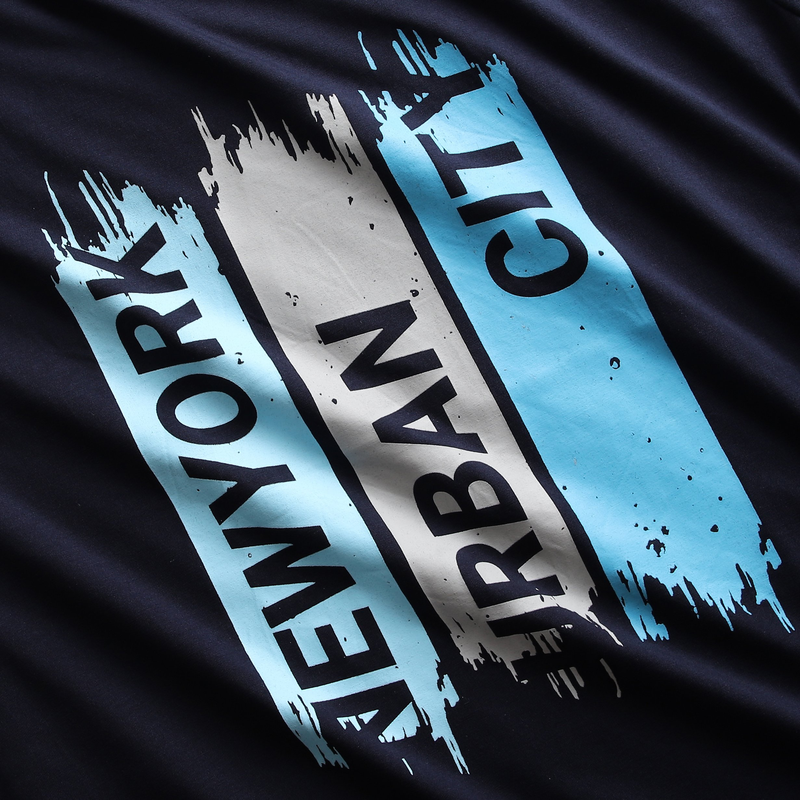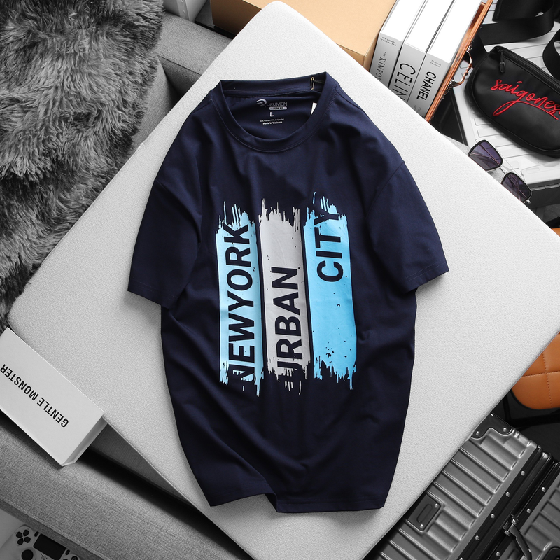 Áo Thun Nam Cổ Tròn Rurumen Màu Xanh Đen In Chữ Dọc Big Size