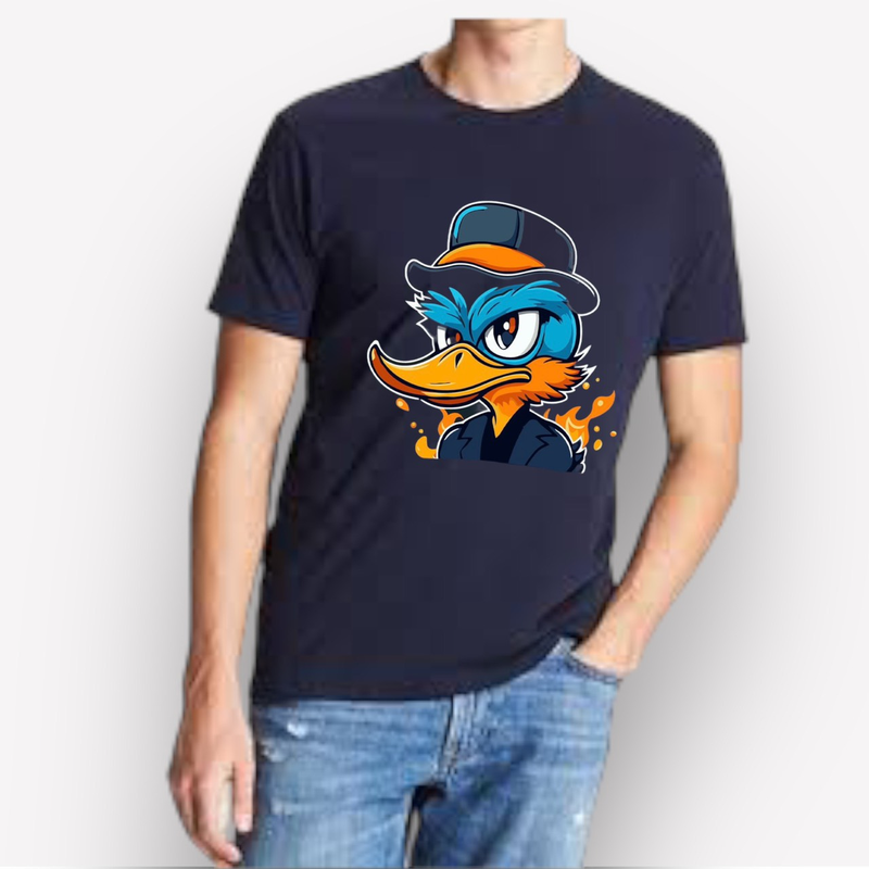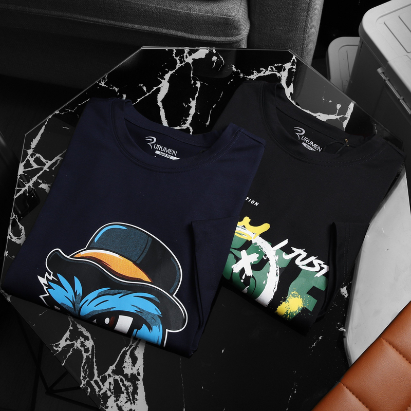 Áo Thun Nam Cổ Tròn Rurumen Màu Xanh Đen In Hình Cool Duck Big Size