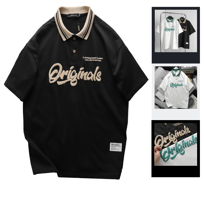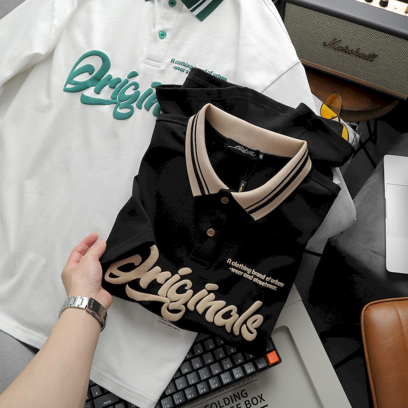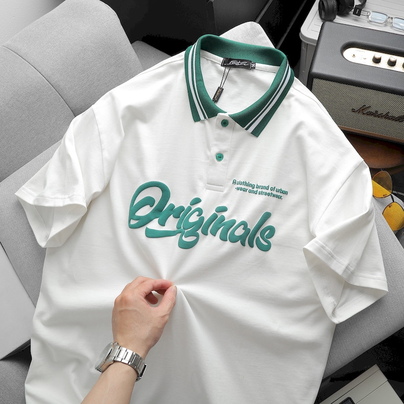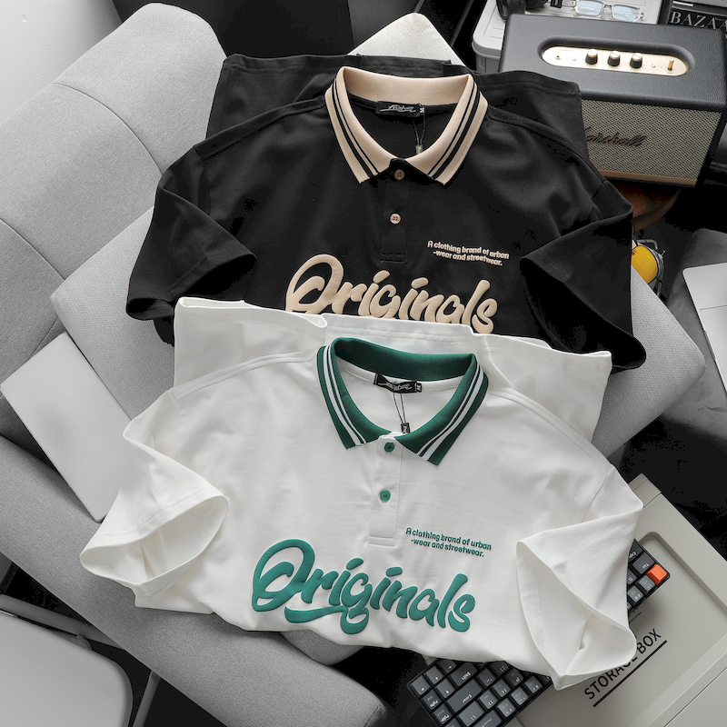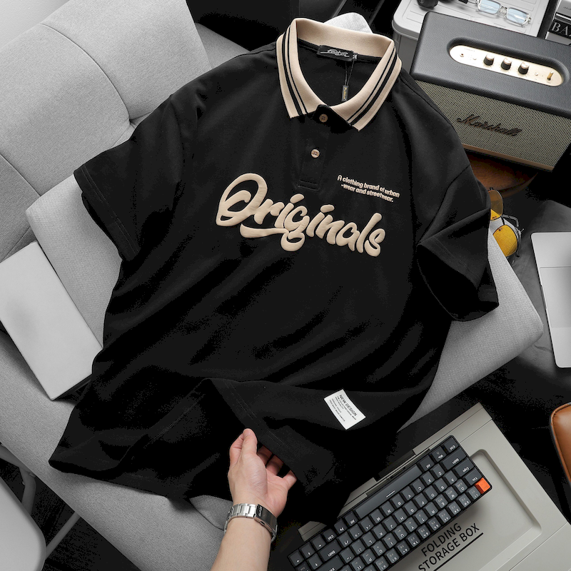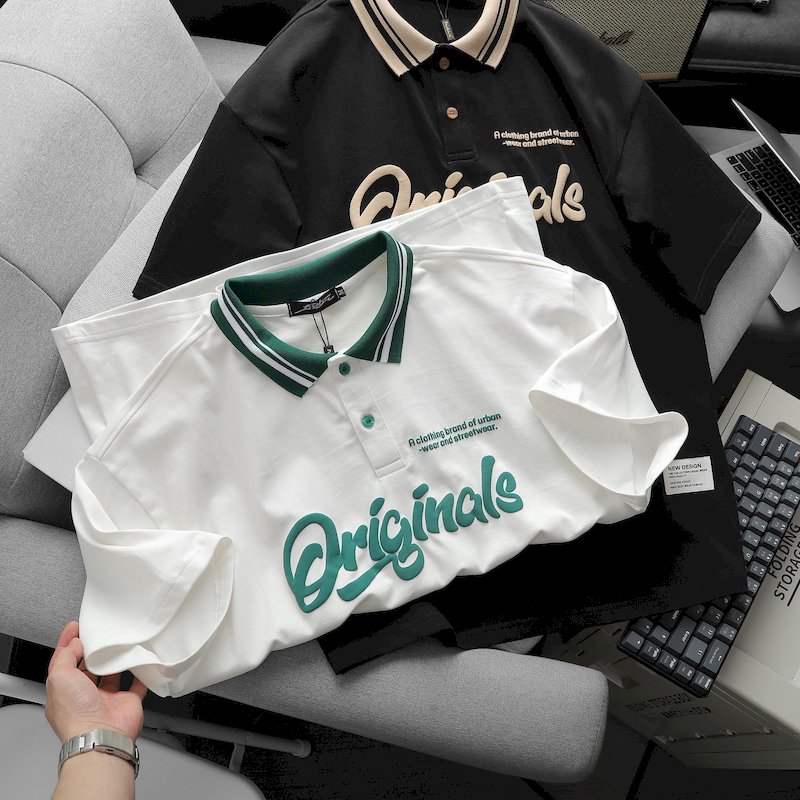 Áo Thun Nam Cổ Bẻ Oversize In Chữ Originals Big Size 110kg