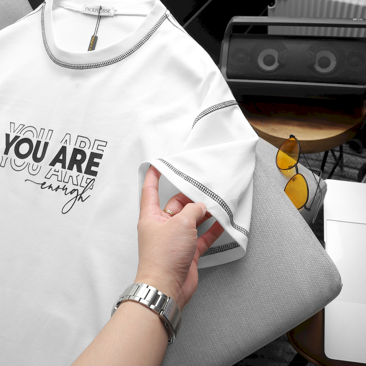 Áo Thun Nam Cổ Tròn Pack Horse In Chữ You Are Enough