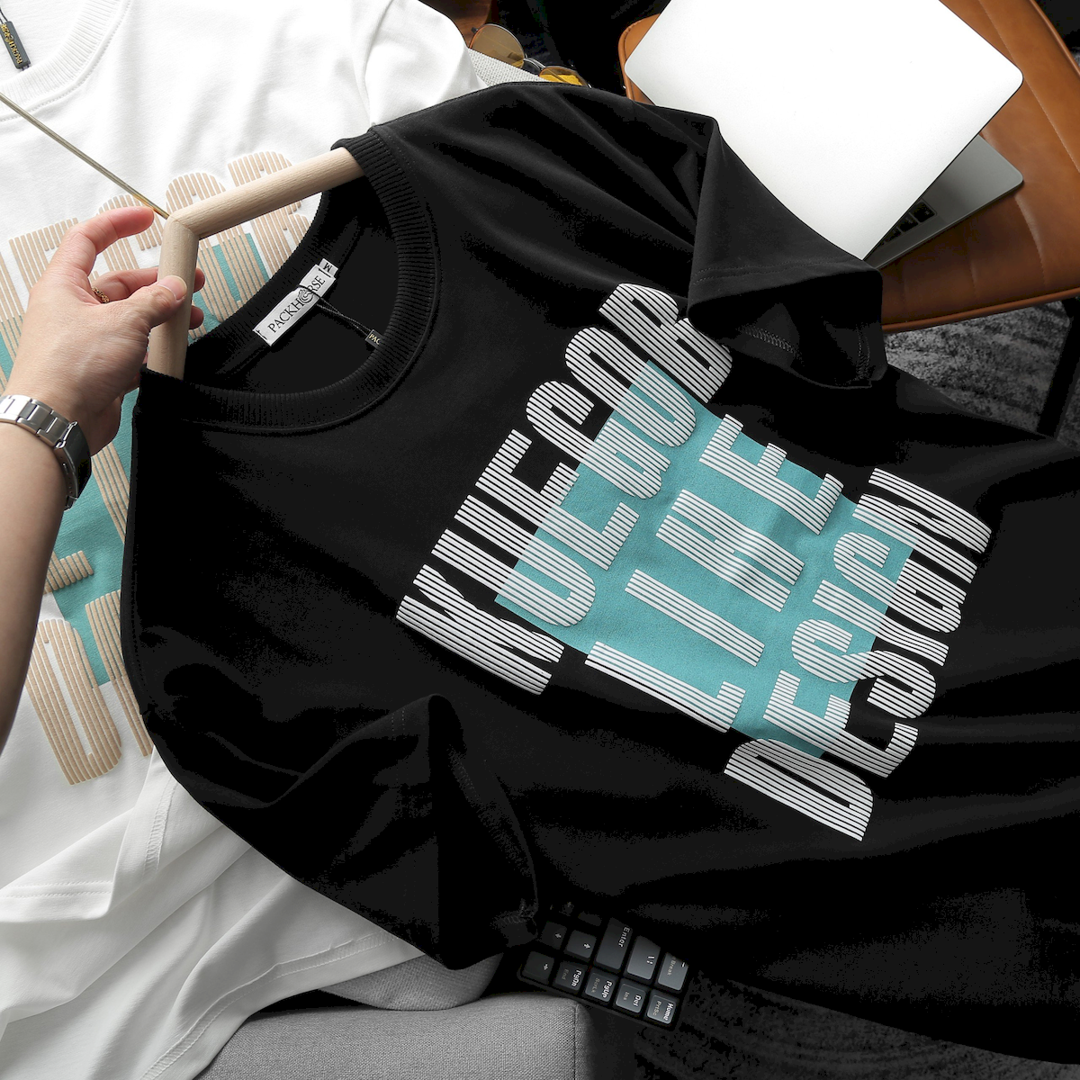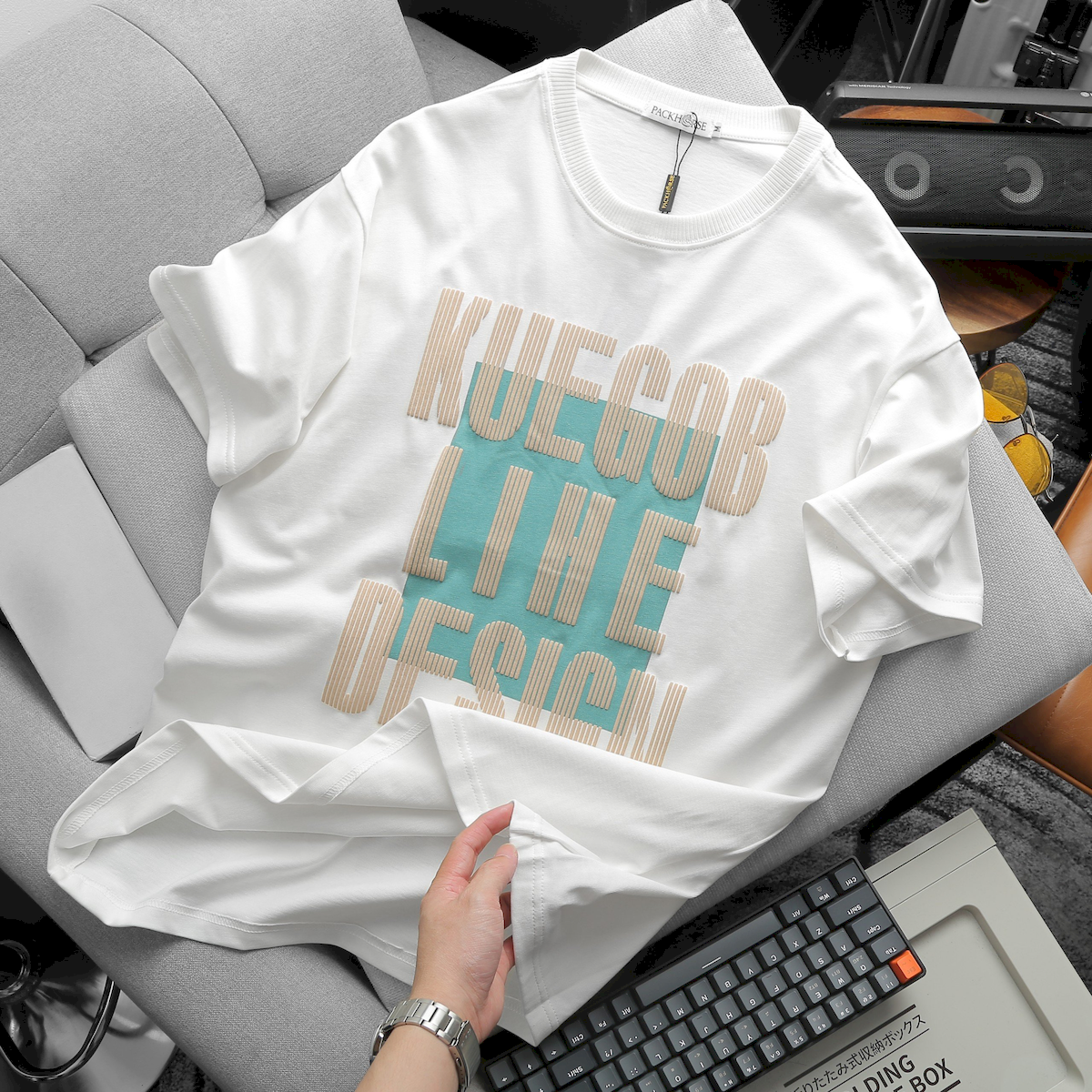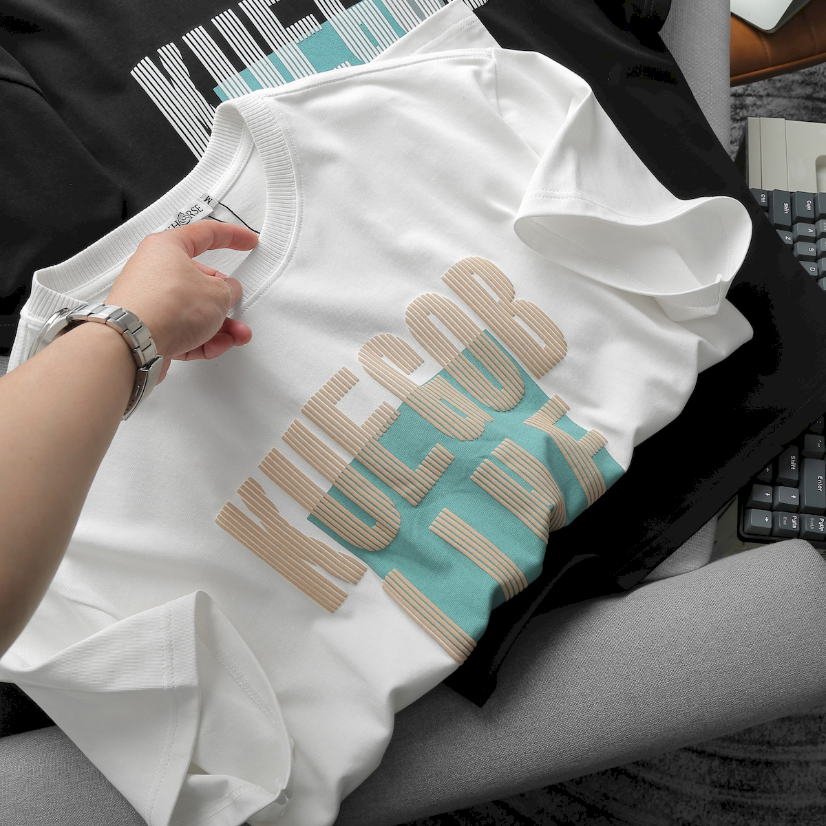 In chữ sọc độc đáo: Áo được thiết kế in chữ sọc tinh tế và độc đáo.