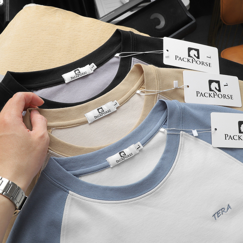 Áo Thun Nam Cổ Tròn Pack Horse Tay Phối Màu Thêu Chữ TERA