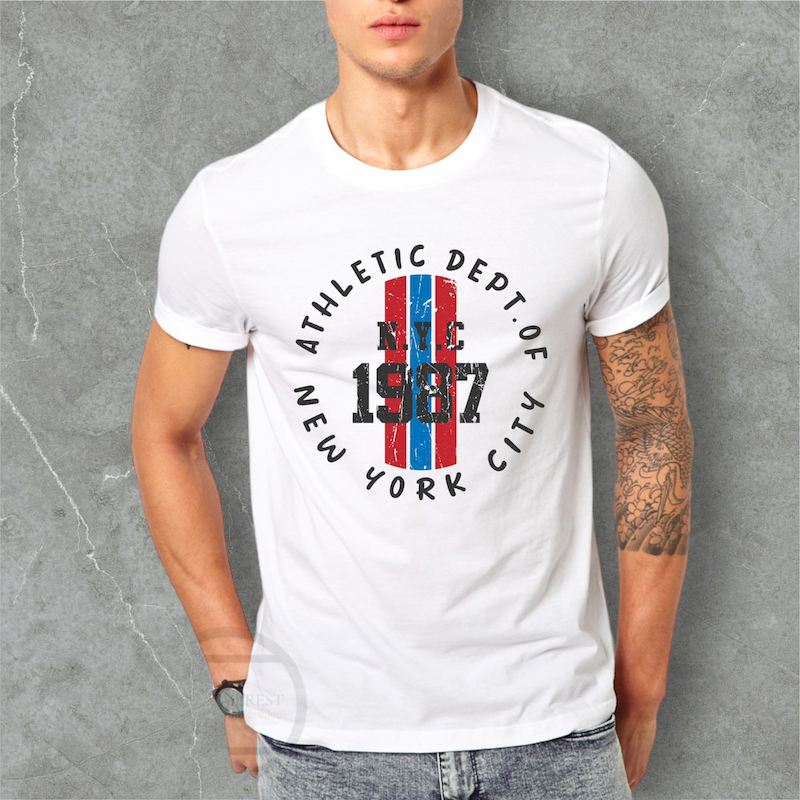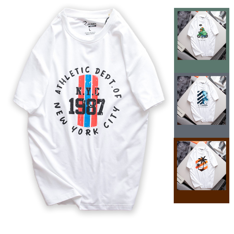 Áo Thun Nam Cổ Tròn Rurumen Màu Trắng In Chữ NYC 1987 (Có size 4x)