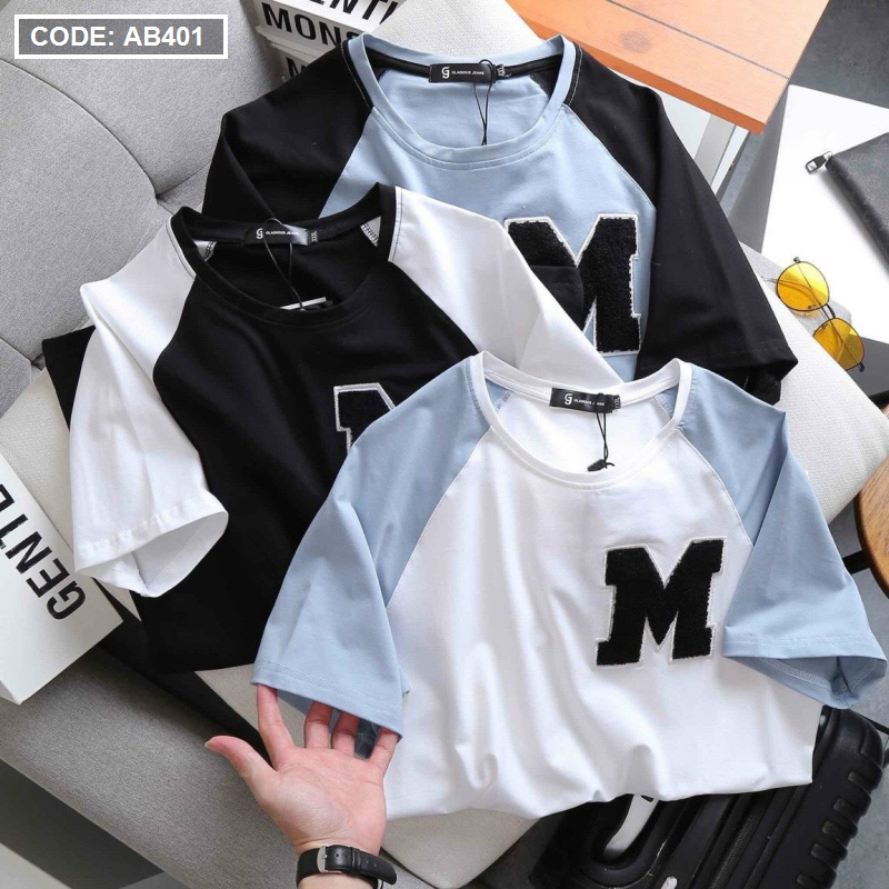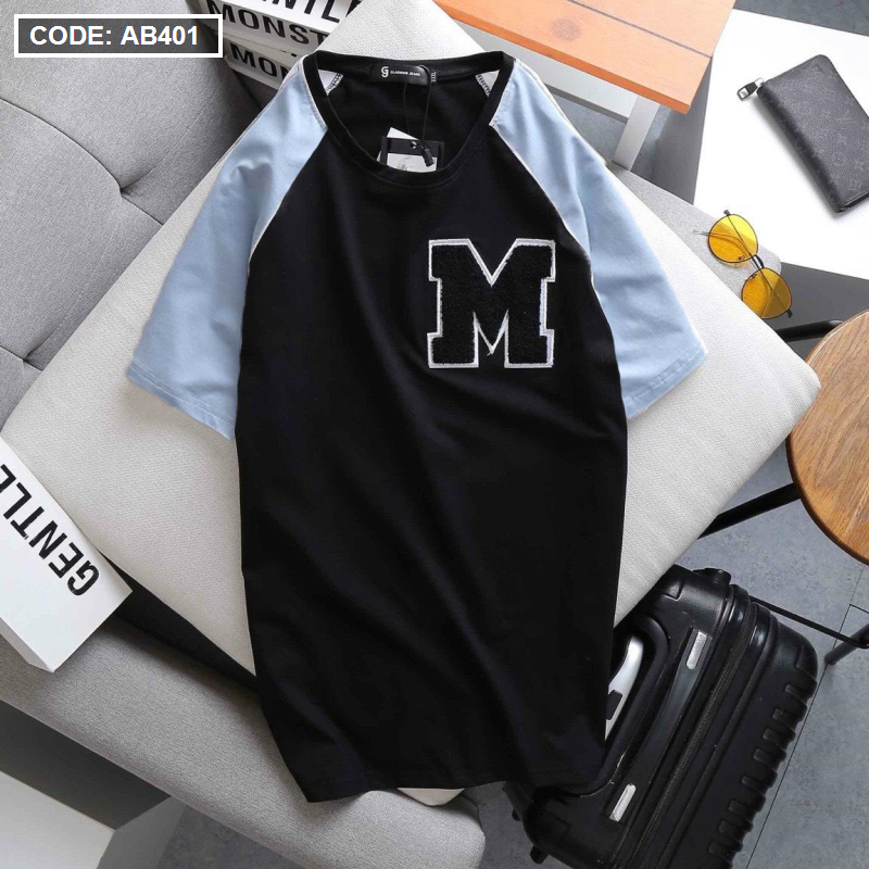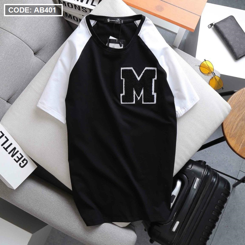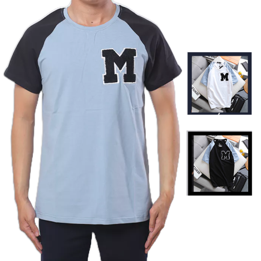 Áo Thun Nam Cổ Tròn Thun Cotton Quảng Châu Thêu Đắp Nổi Chữ M