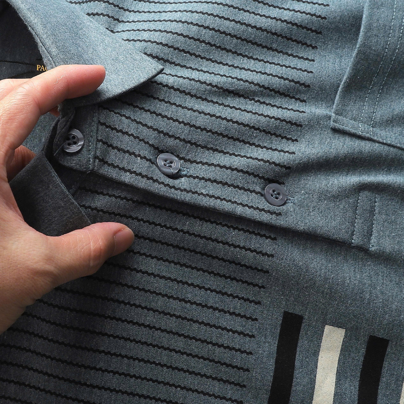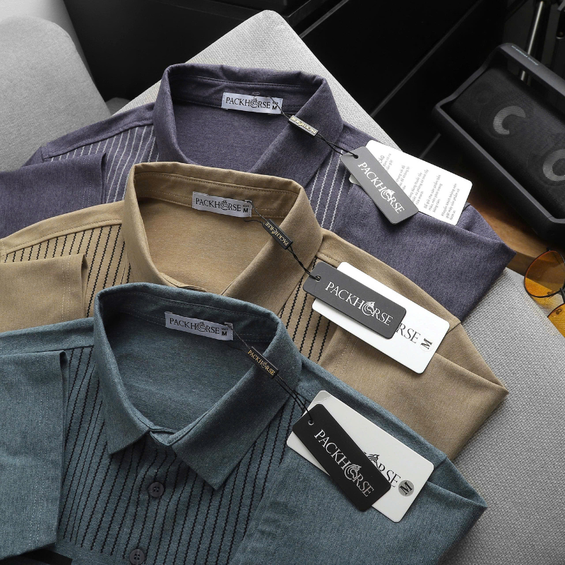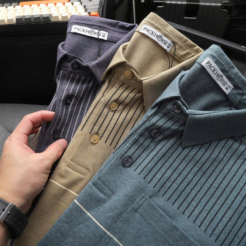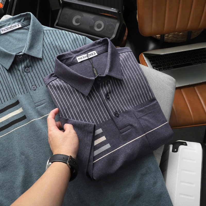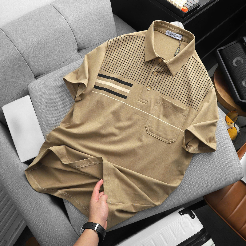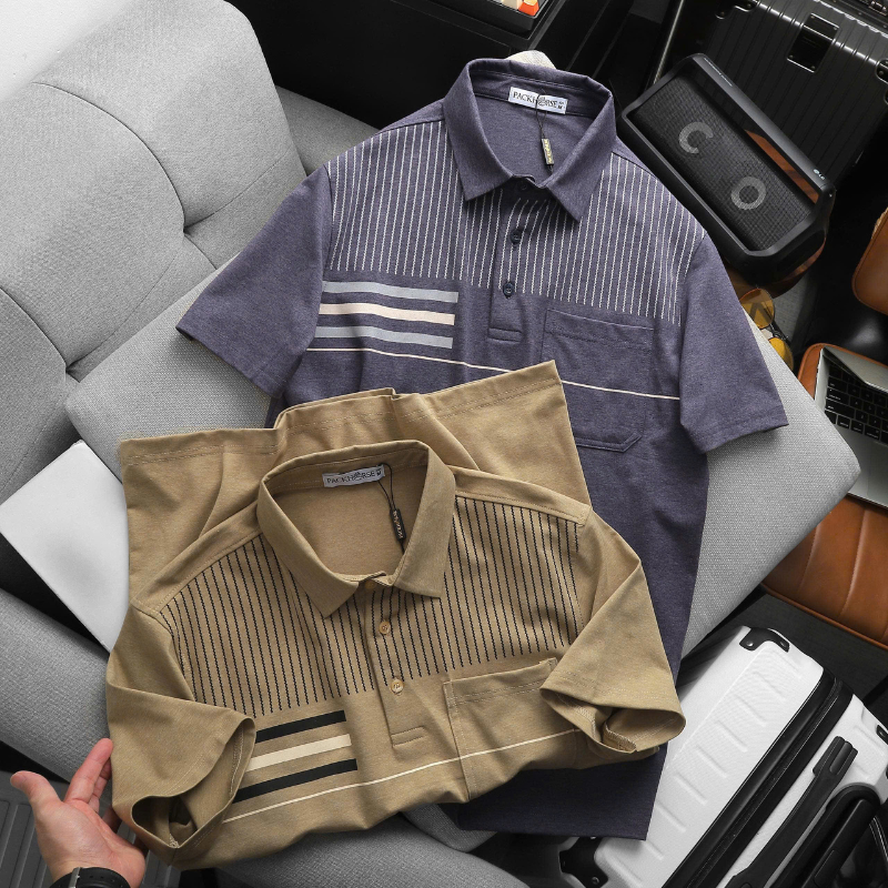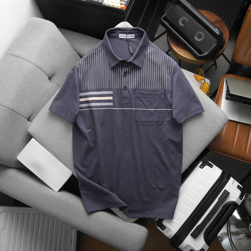 Một chiếc áo polo đẹp cho anh em trung niên/đi làm không nhất thiết phải quá cầu kỳ, chỉ cần form đứng, chất mát và họa tiết tinh tế là nhìn đã rất sáng rồi. Mẫu polo cotton mới này được thiết kế với phần ngực phối sọc dệt nổi sang trọng, có túi trước tiện để bút/khẩu trang/giấy tờ nhỏ. Tông màu xanh than – nâu – tím than nhã nhặn, hợp từ đi làm, đi cà phê, gặp bạn bè cho tới những buổi đi chơi cùng gia đình.