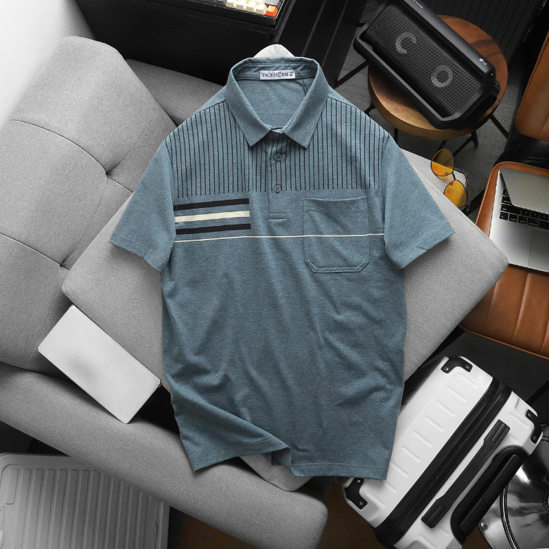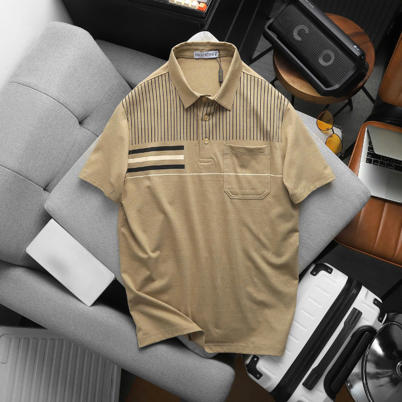 Áo Thun Nam Polo – Áo Thun Cổ Bẻ Nam Phối Sọc Có Túi Trước Ngực Sang Trọng Có Big Size