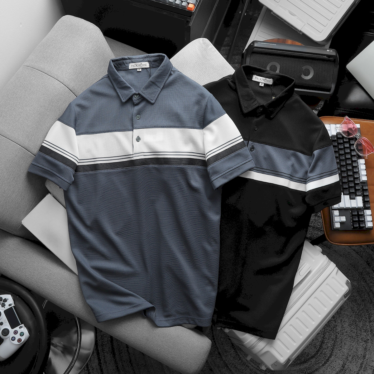 Áo Thun Nam Polo Cổ Bẻ Pack Horse Phối Sọc Ngang Đơn Giản