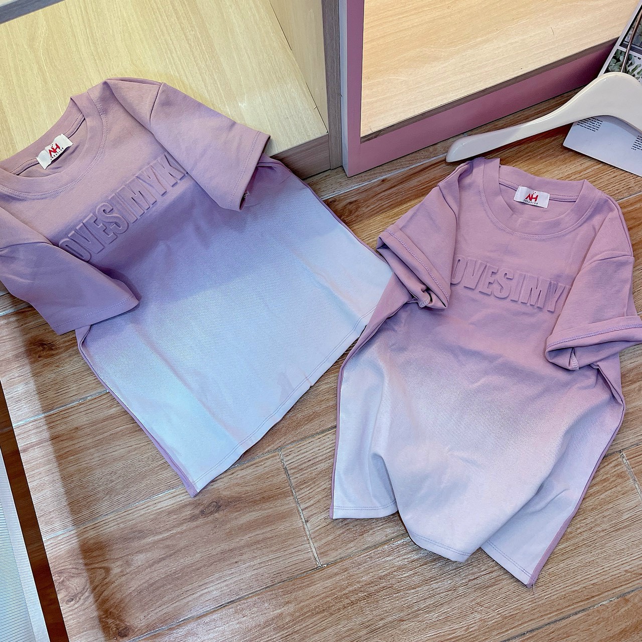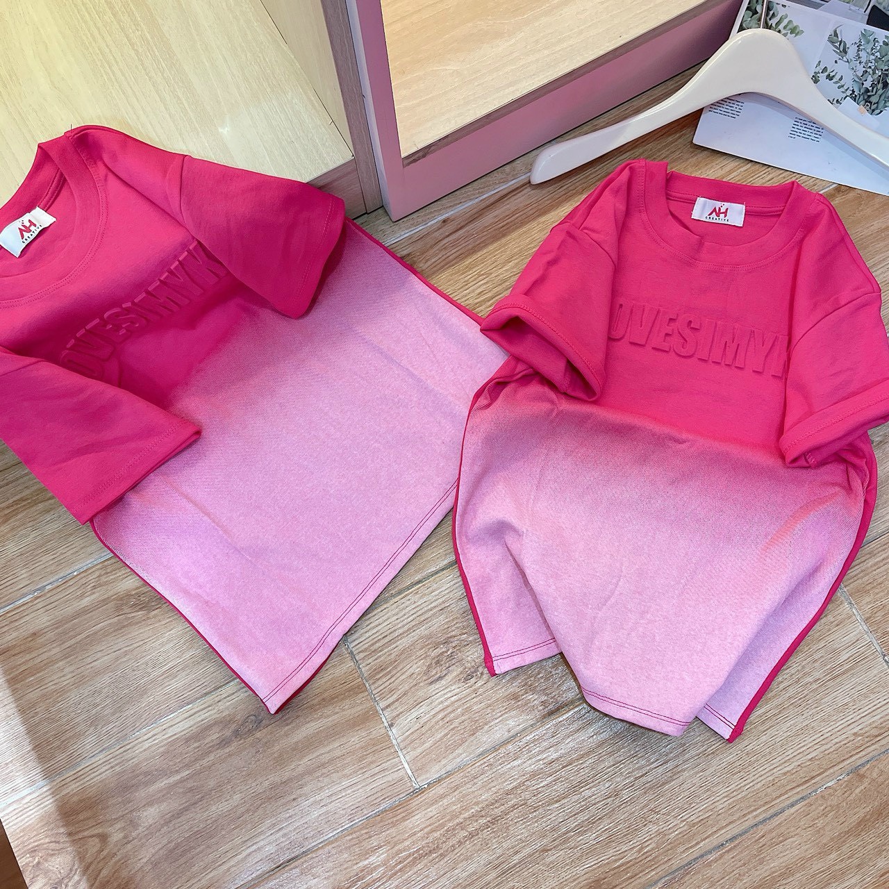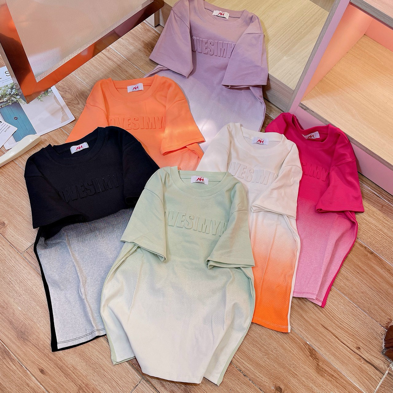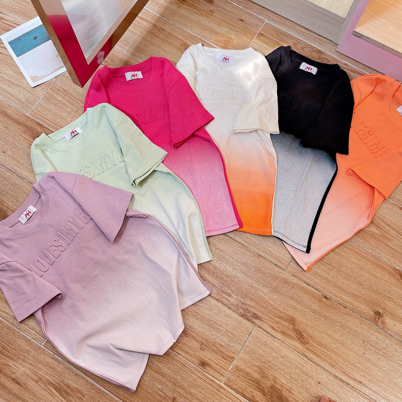Áo thun nữ Baby Tee loang 2 màu chữ nổi ôm body từ 35kg – 55kg