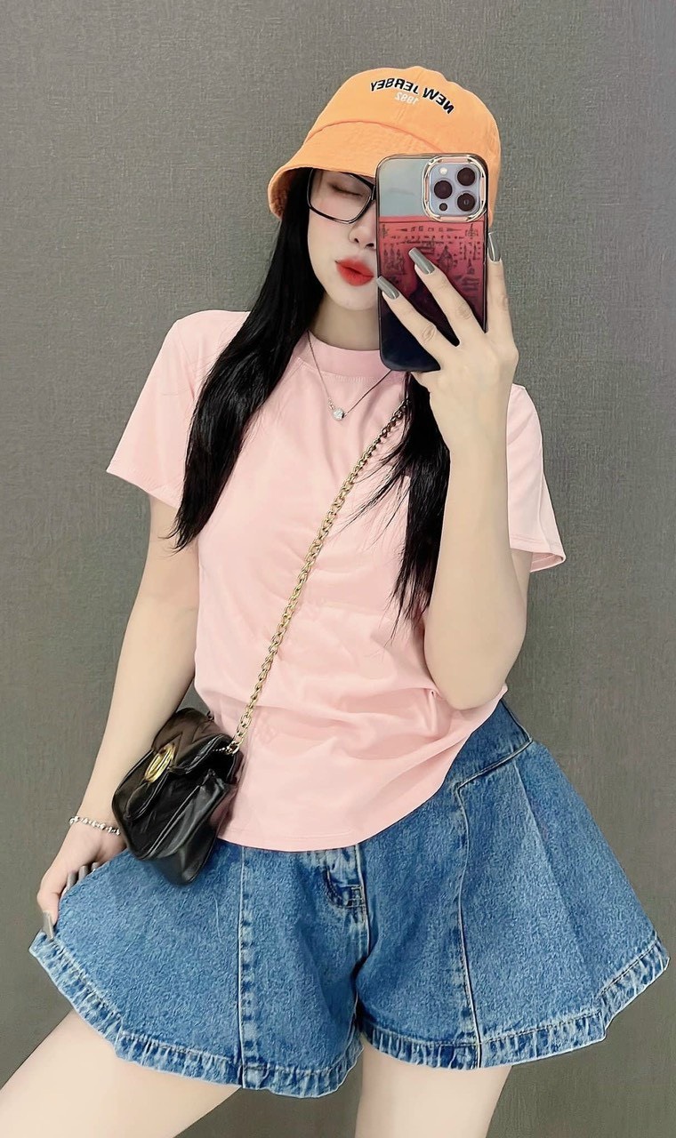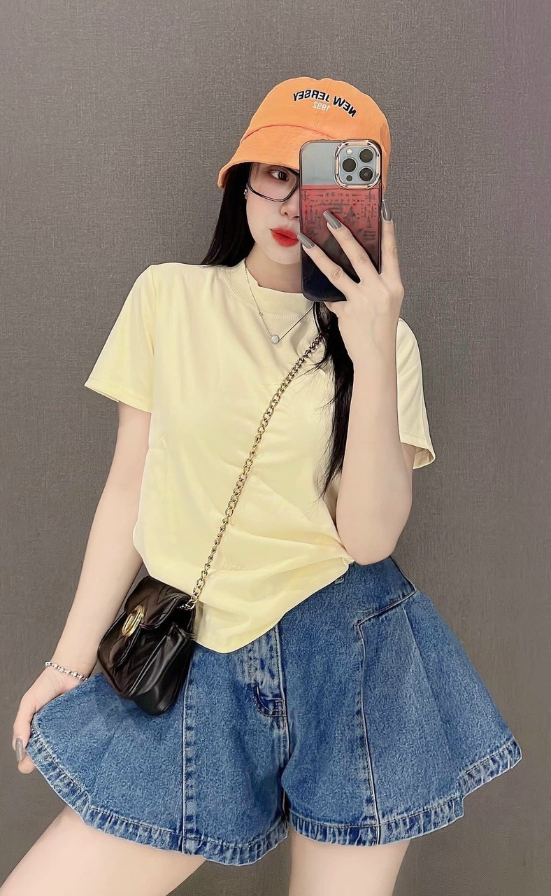 Áo thun nữ Baby Tee ôm body tay ngắn Trơn từ 35kg – 55kg