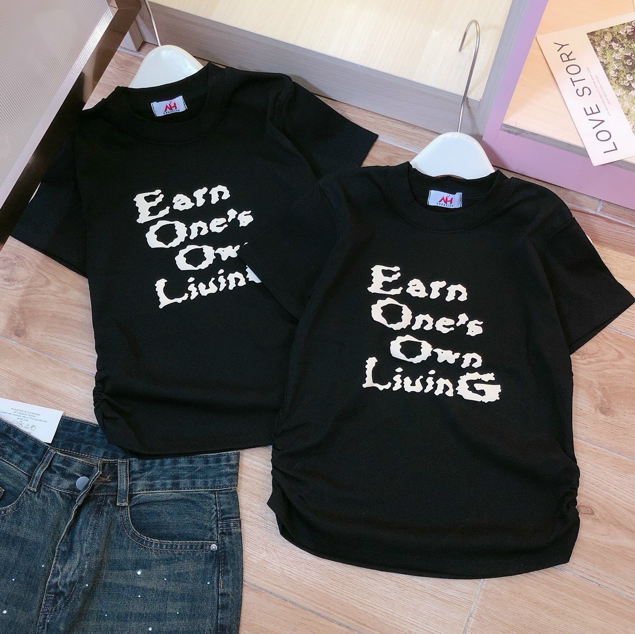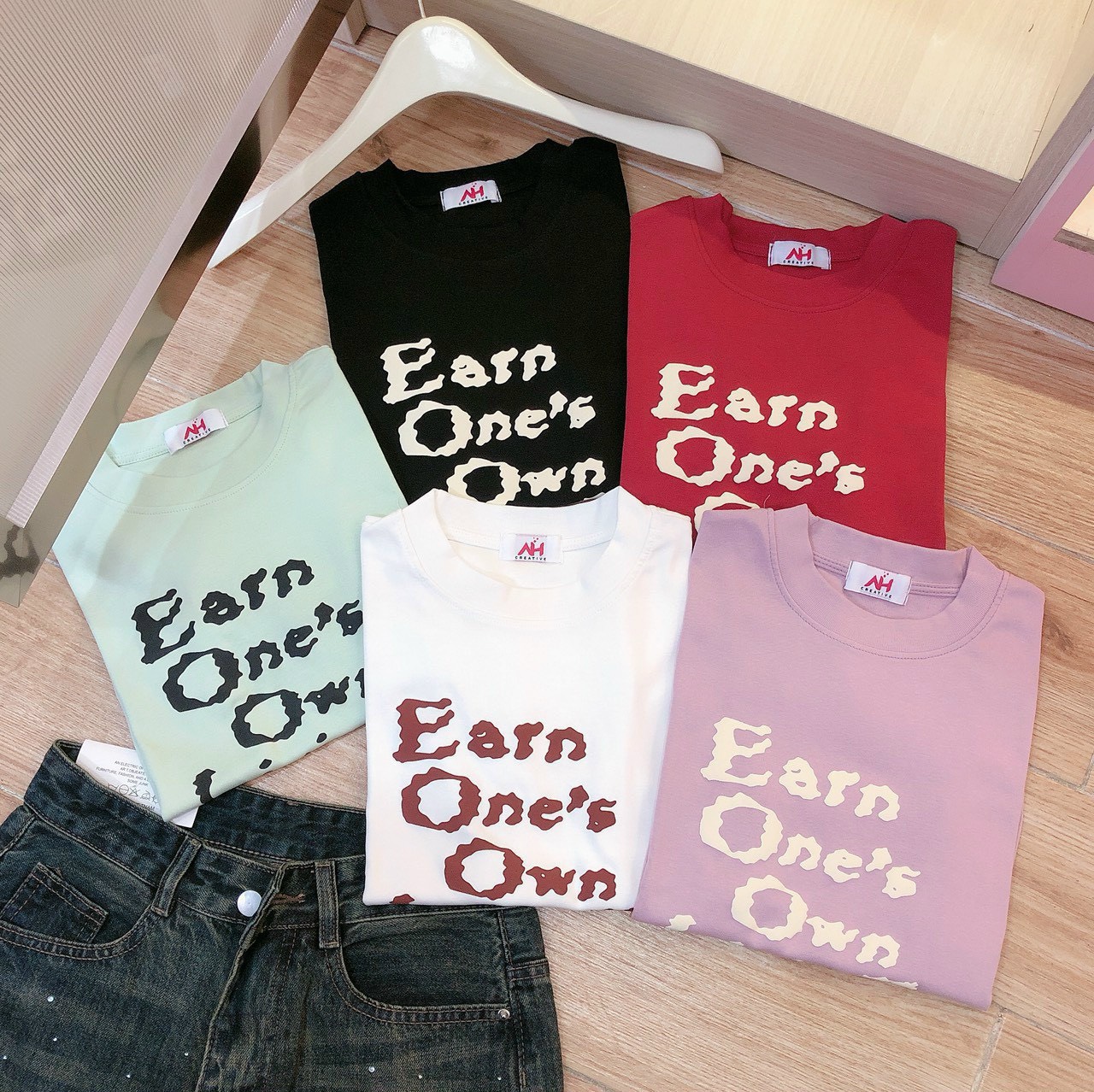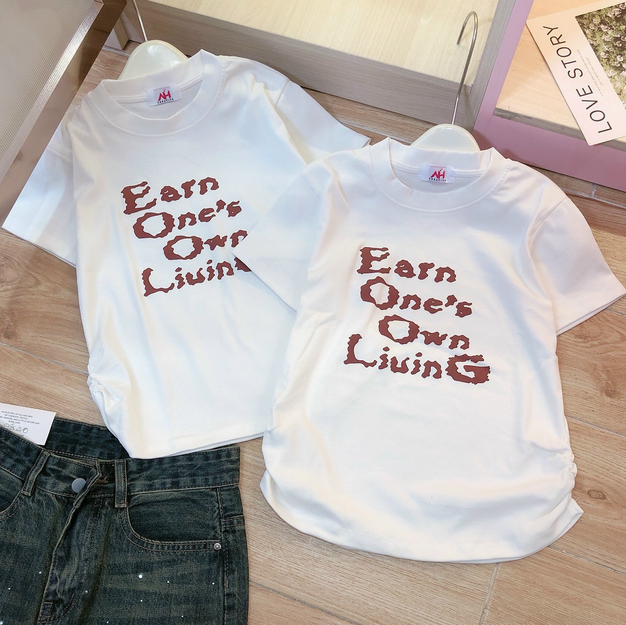 Áo thun nữ Baby Tee ôm body từ 35kg – 55kg in chữ Earn One