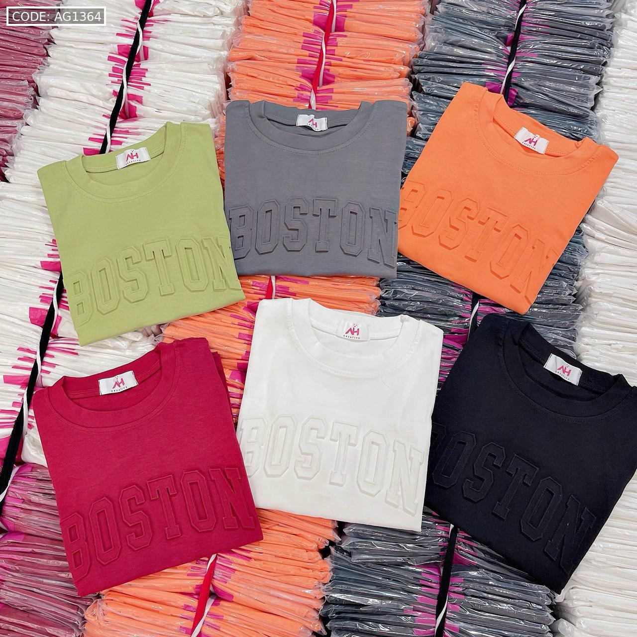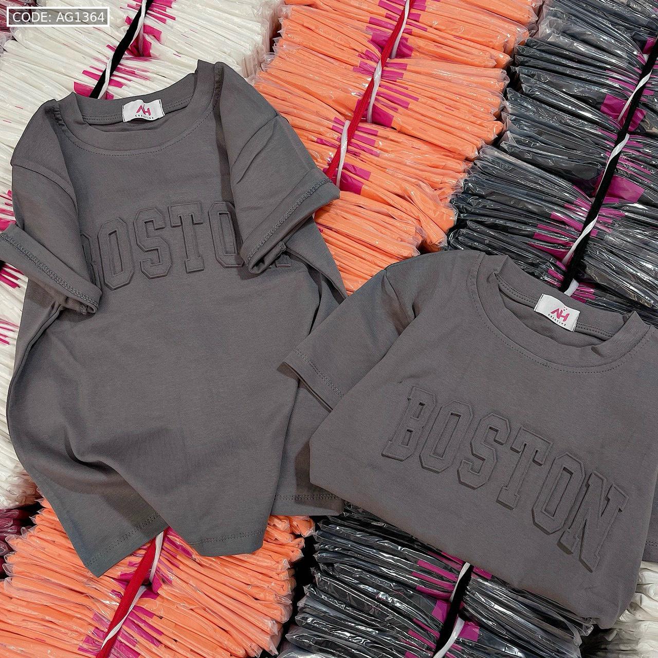 Áo thun nữ Baby Tee ôm body từ 35kg – 55kg In chữ Nổi BOSTON