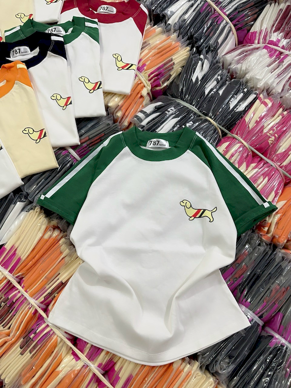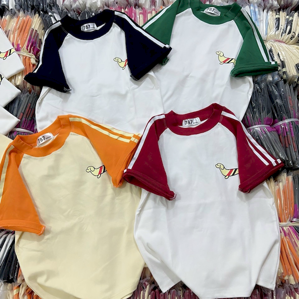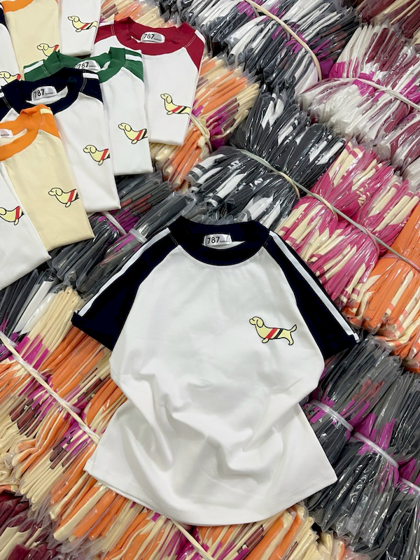 Áo Thun Nữ Cổ Tròn Baby Tee Tay Phối Màu In Hình Cún Mạc AH787