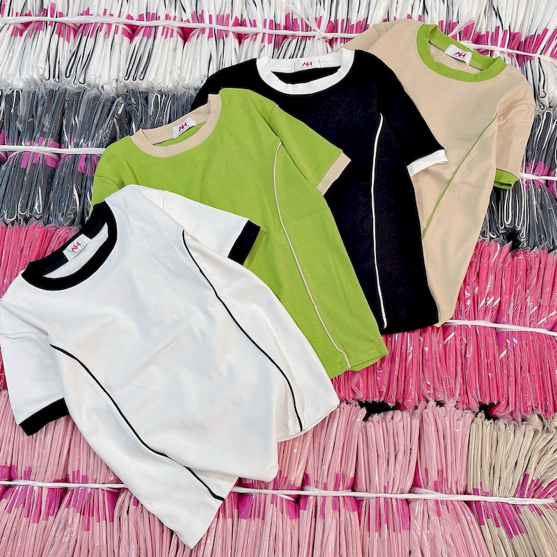 Áo Thun Nữ Cổ Tròn Baby Tee Trơn Viền Sọc Eo Mạc AH787