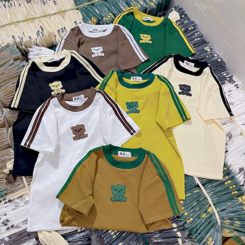 Áo Thun Nữ Cổ Tròn Baby Tee Viền Bo Màu In Chữ Gấu Mạc AH787
