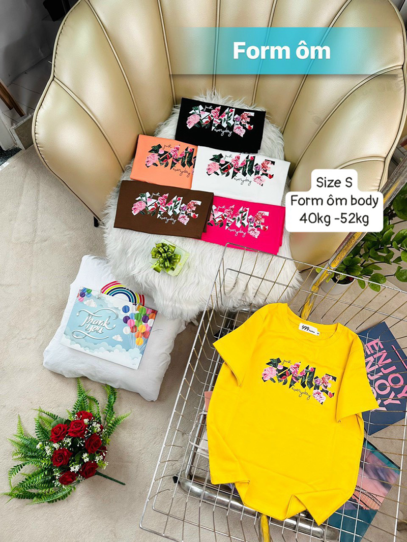 Áo Thun Nữ Cổ Tròn Form Ôm Body In Hình Size S(40-52kg)