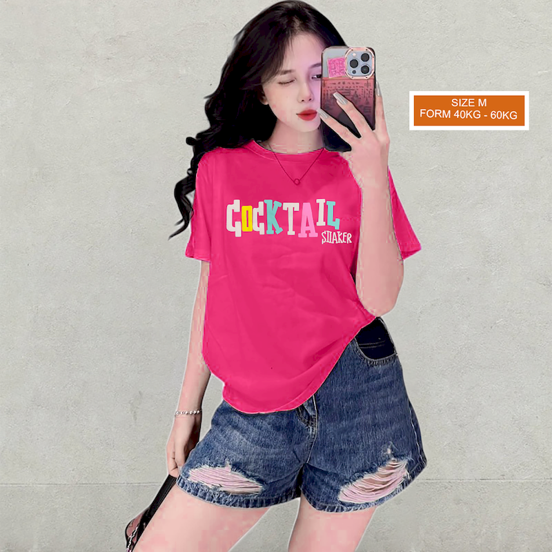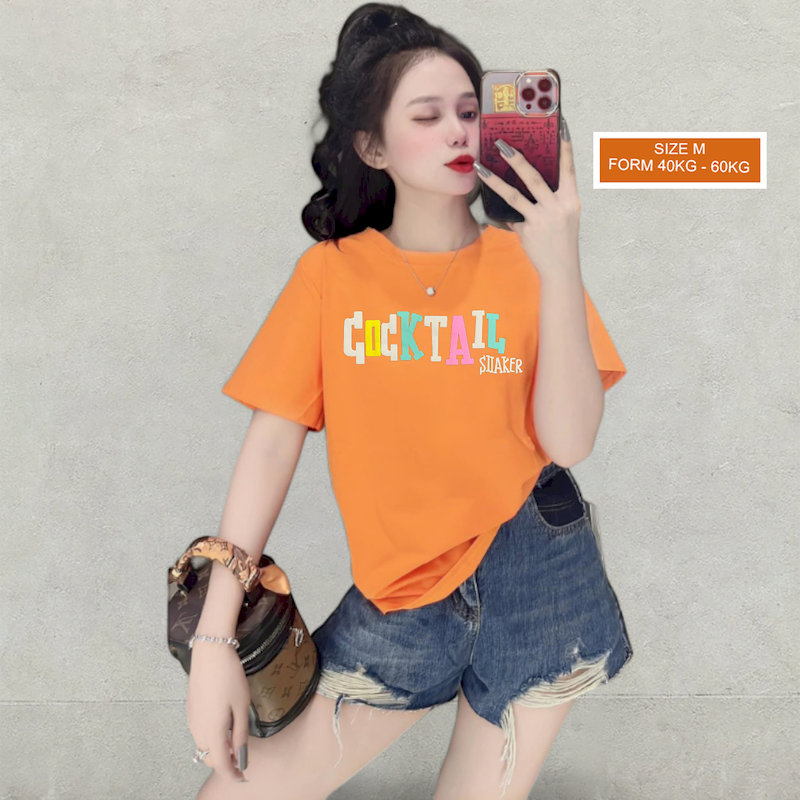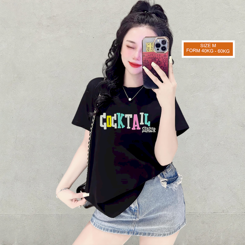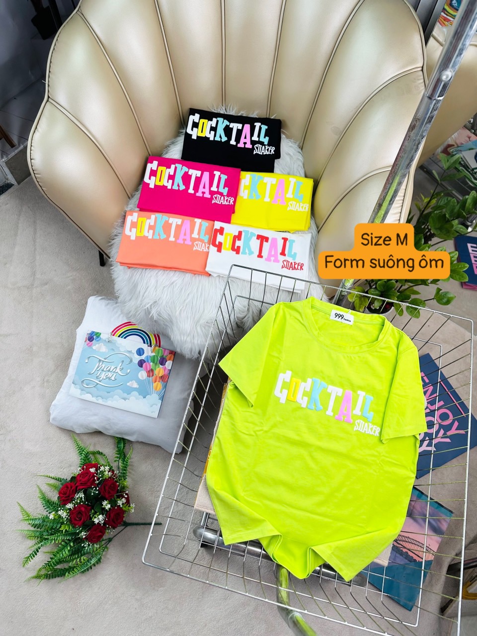 Áo Thun Nữ Cổ Tròn Form Vừa In Chữ Cocltail Size M(40-60kg)