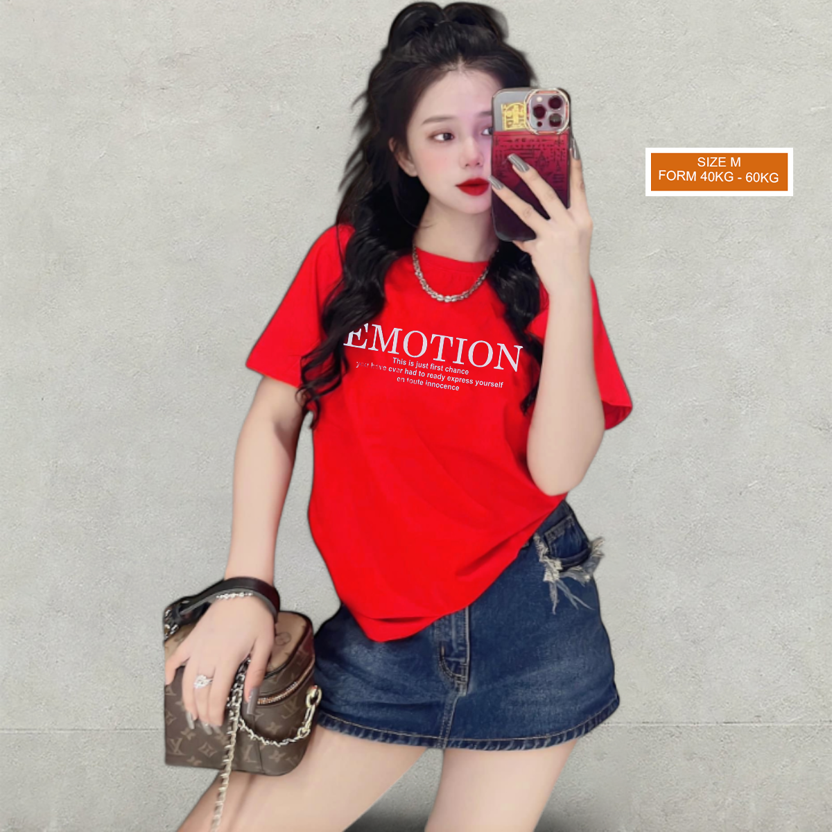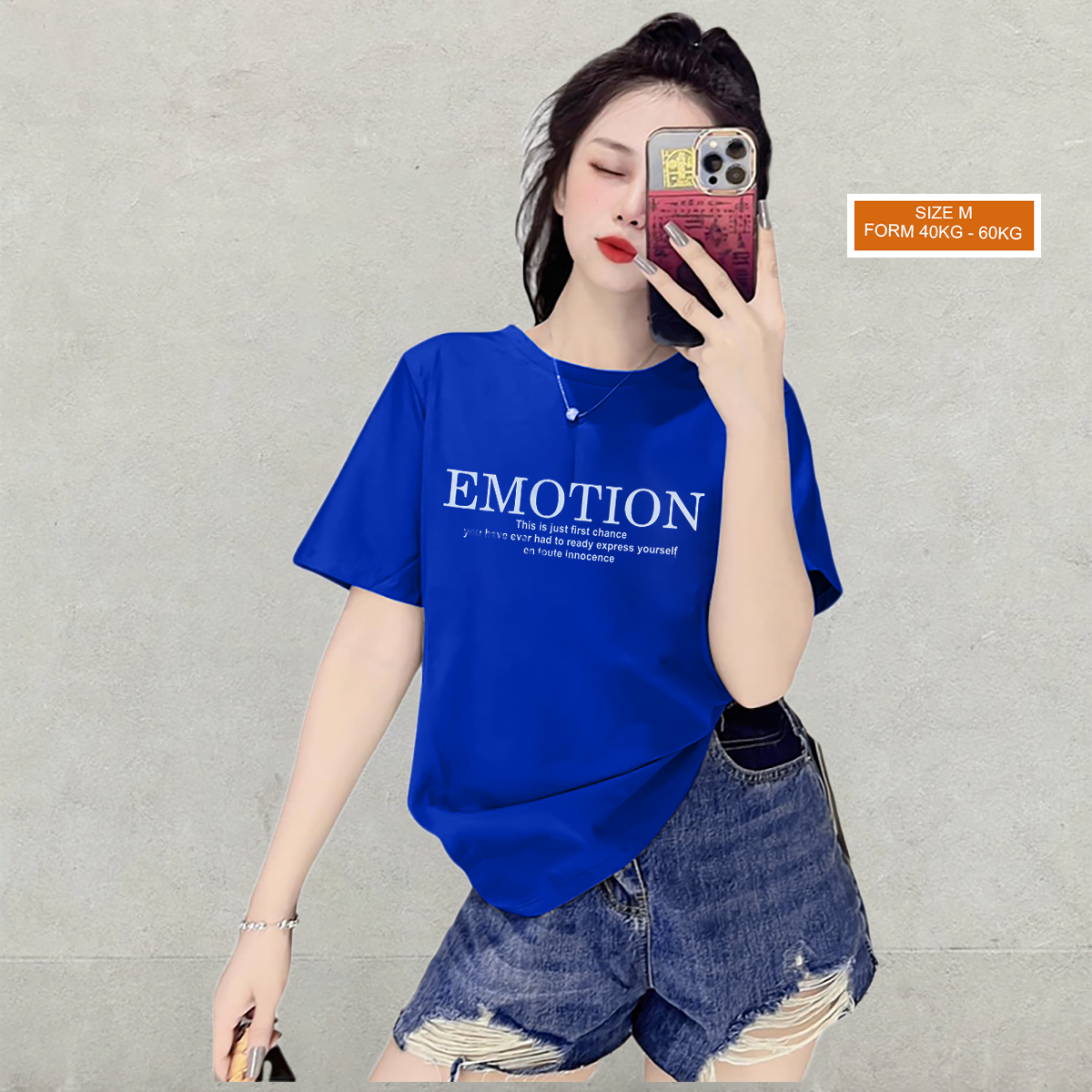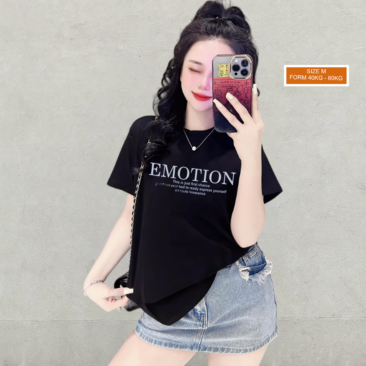 Áo Thun Nữ Cổ Tròn Form Vừa In Chữ EMOTION Size M(40-60kg)
