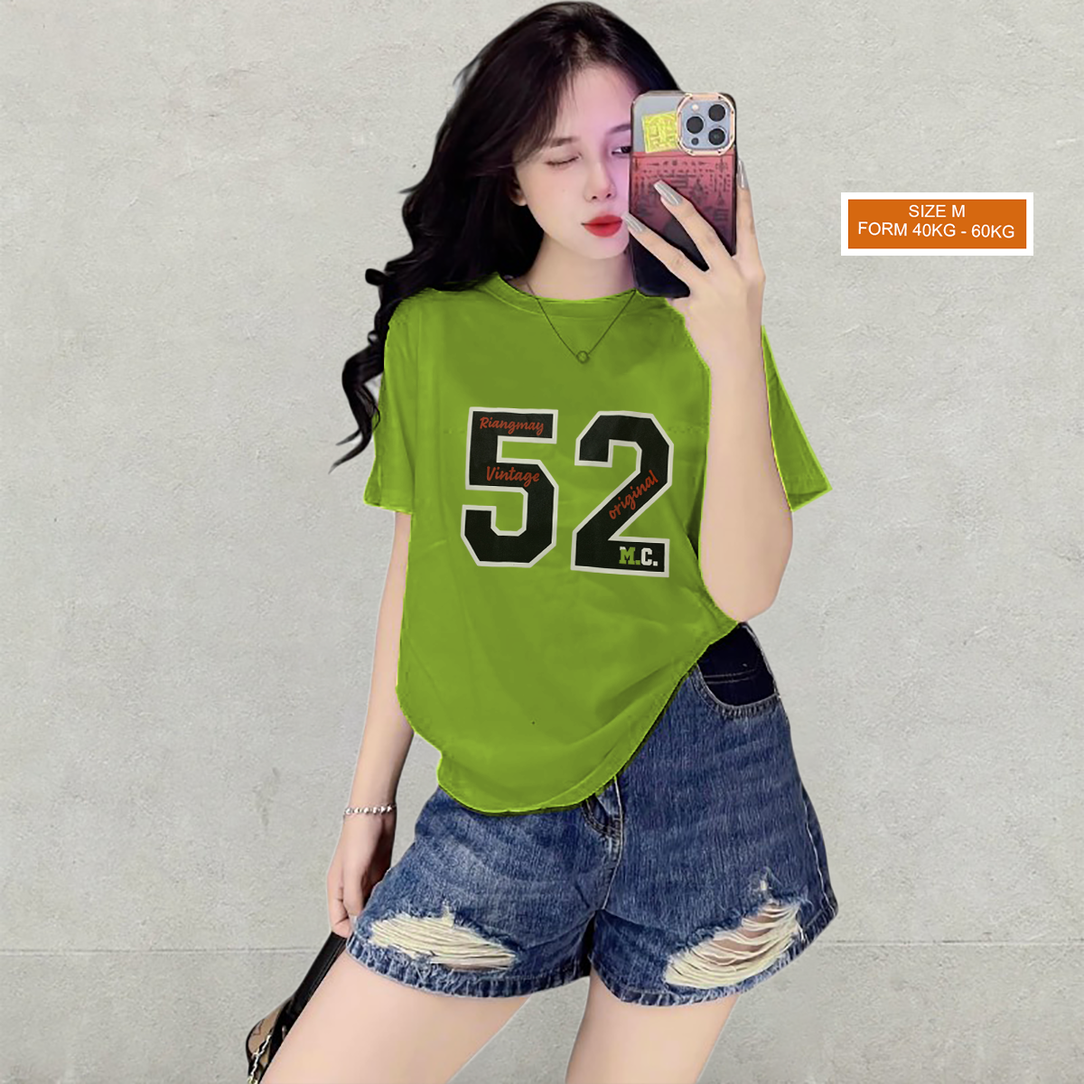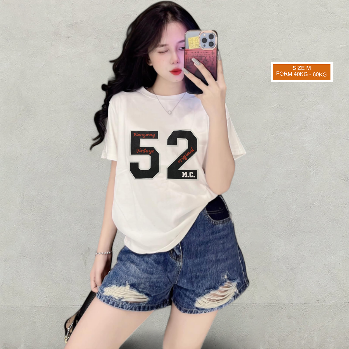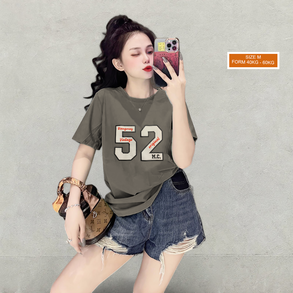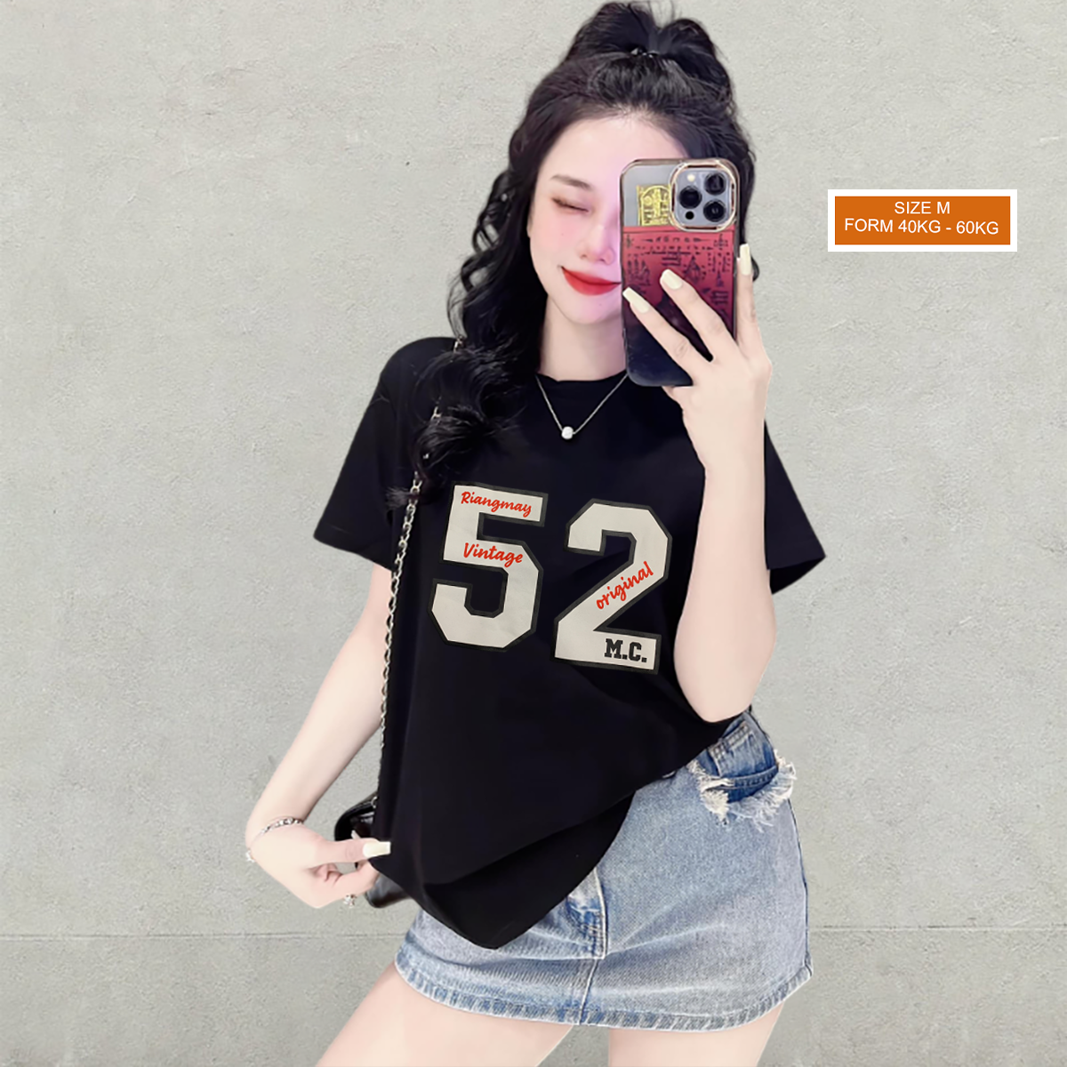 Áo Thun Nữ Cổ Tròn Form Vừa In Số 52 Size M(40-60kg)
