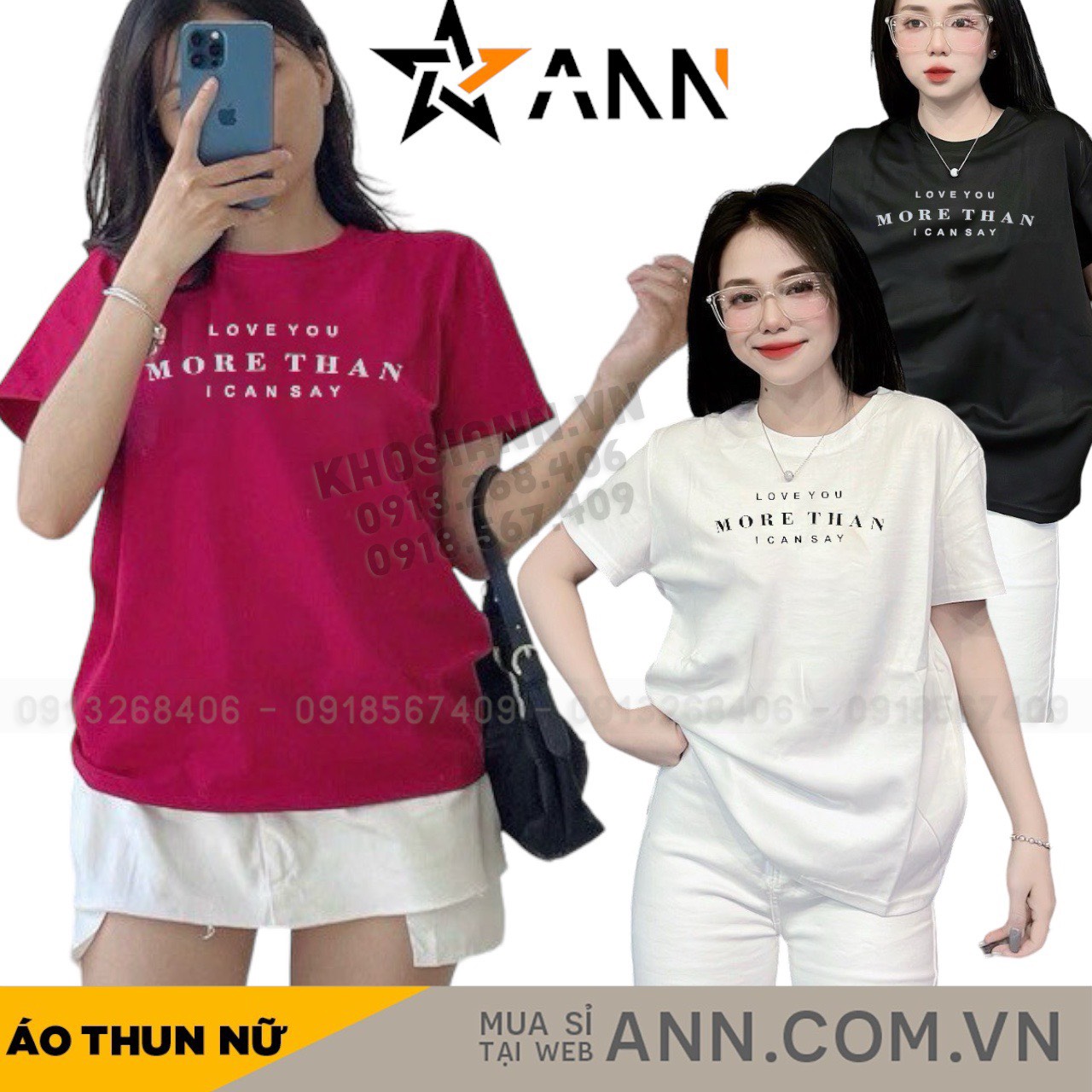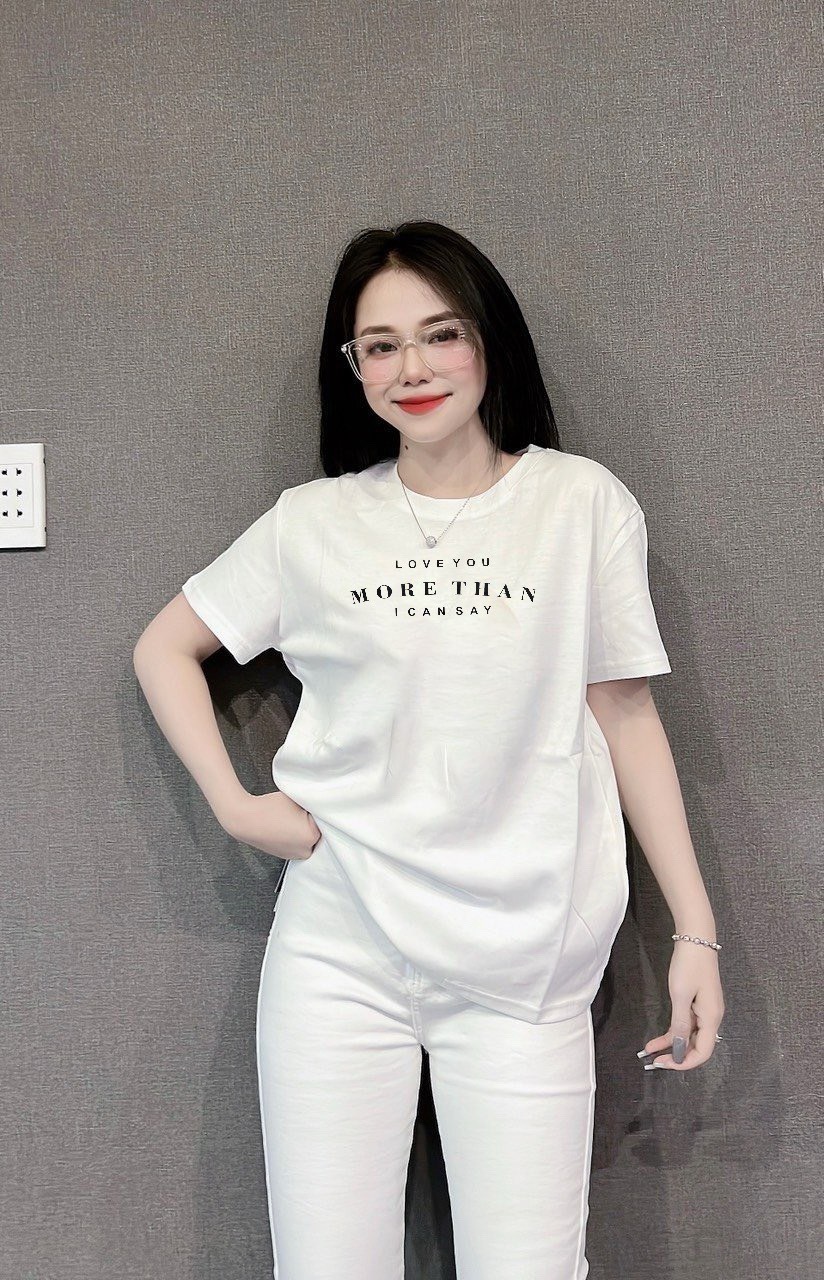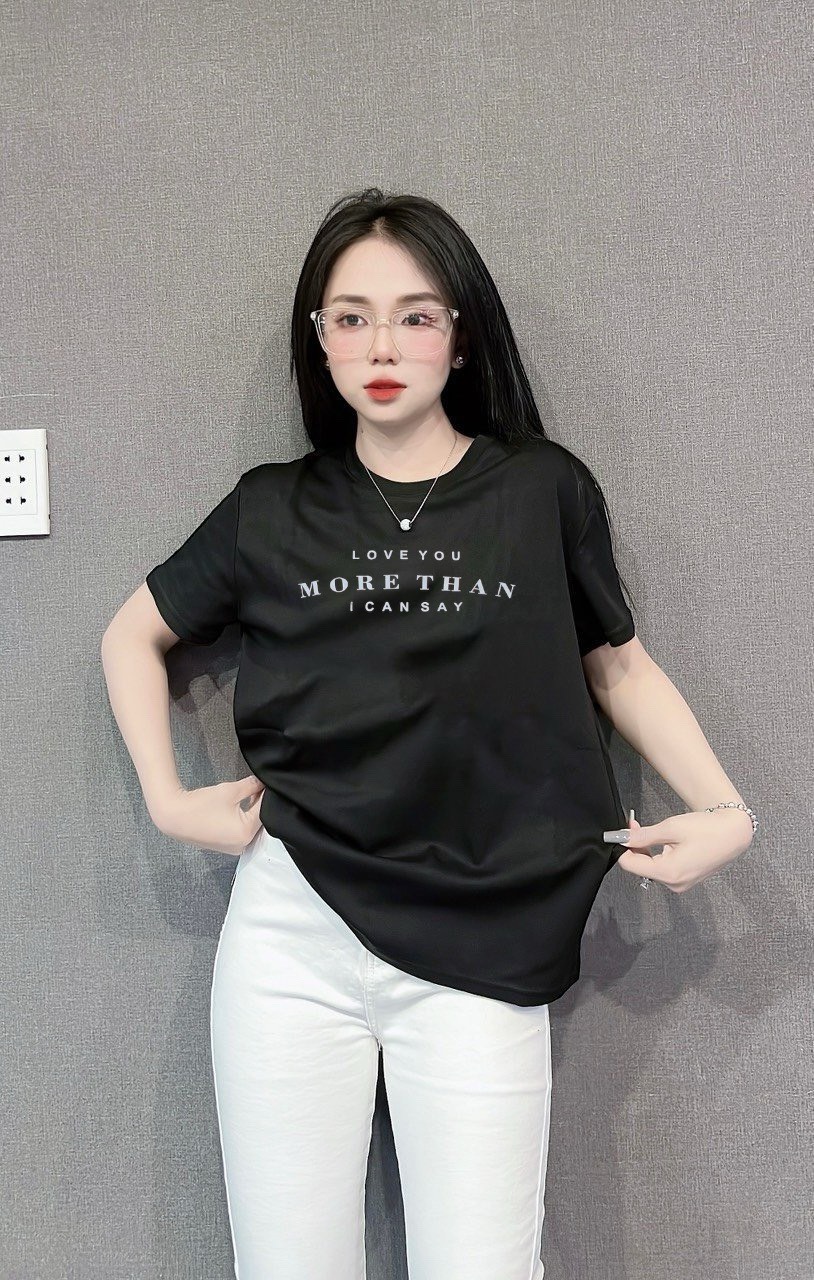 Áo Thun Nữ Cổ Tròn In chữ MORE THAN form ôm suông rộng size L(45-65kg)