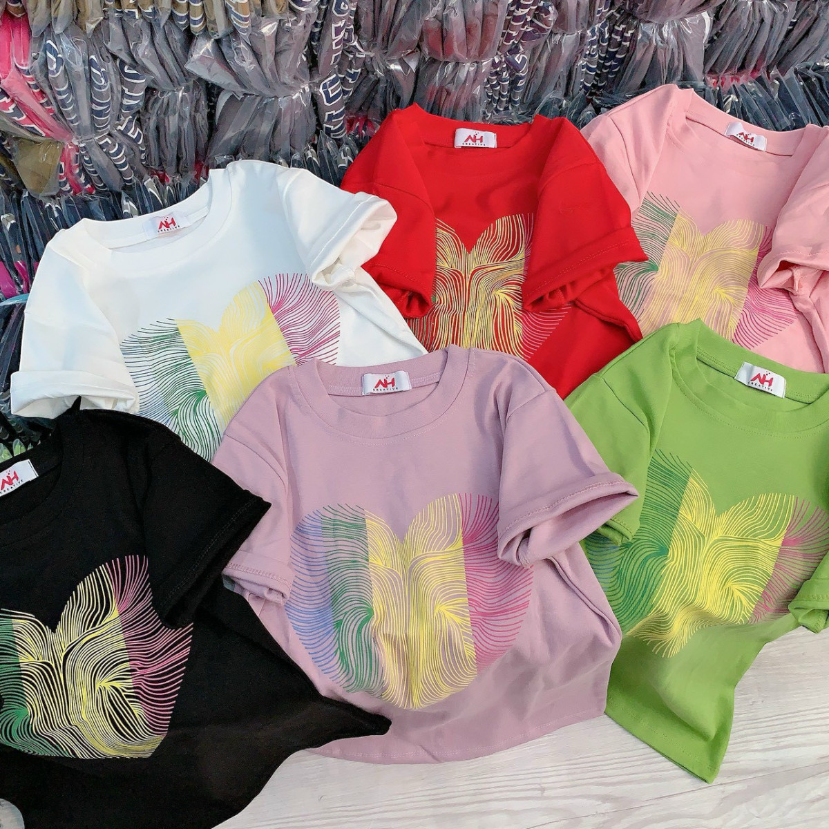 Áo thun nữ in hình trái tim màu Baby Tee ôm body từ 35kg – 55kg