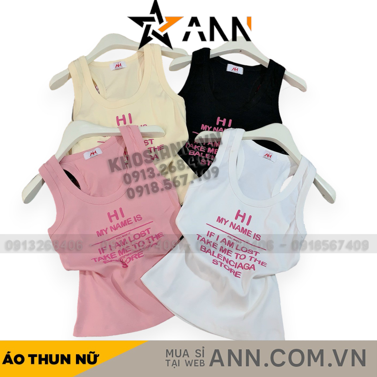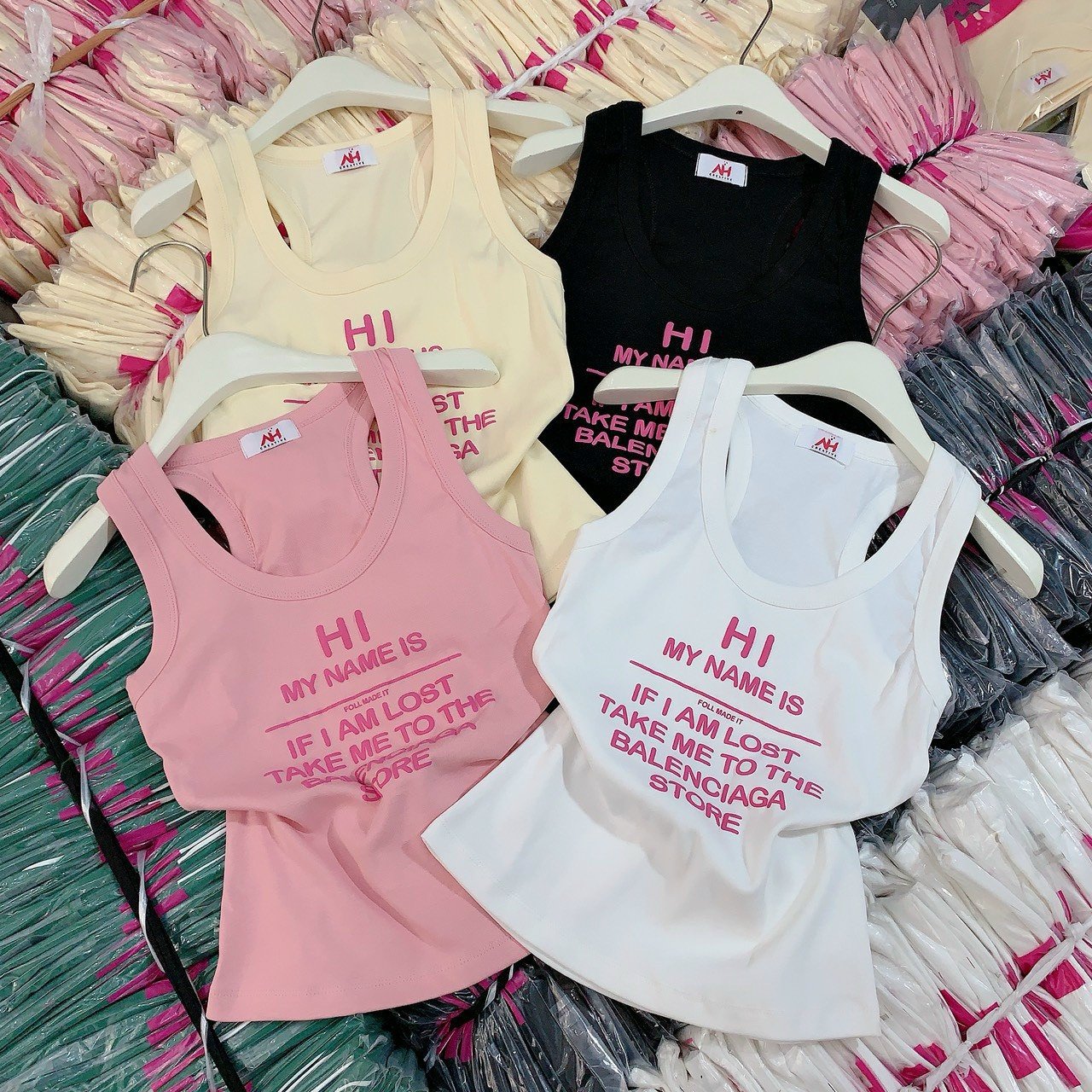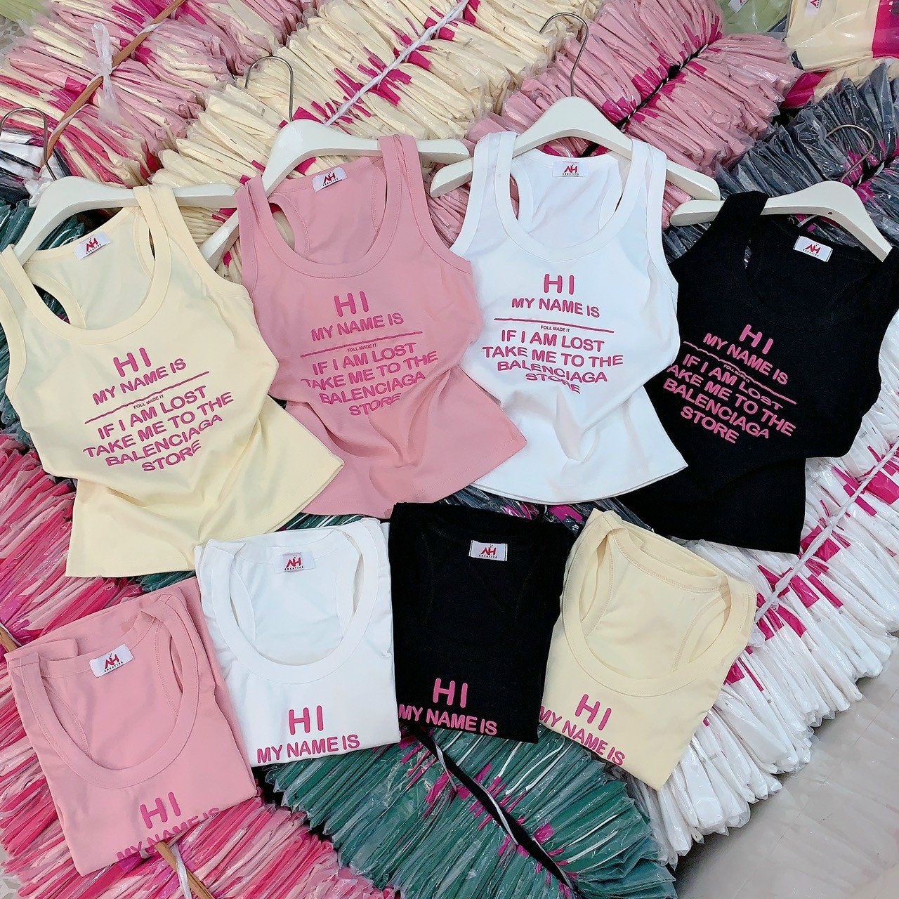 Áo thun nữ sát nách Baby Tee ôm body từ 35kg – 55kg in Chữ HI