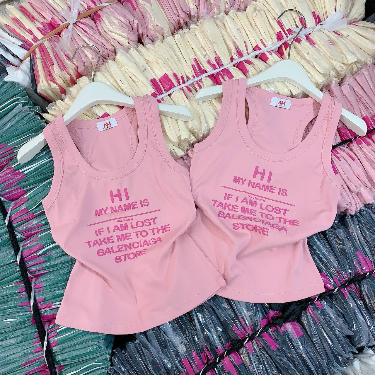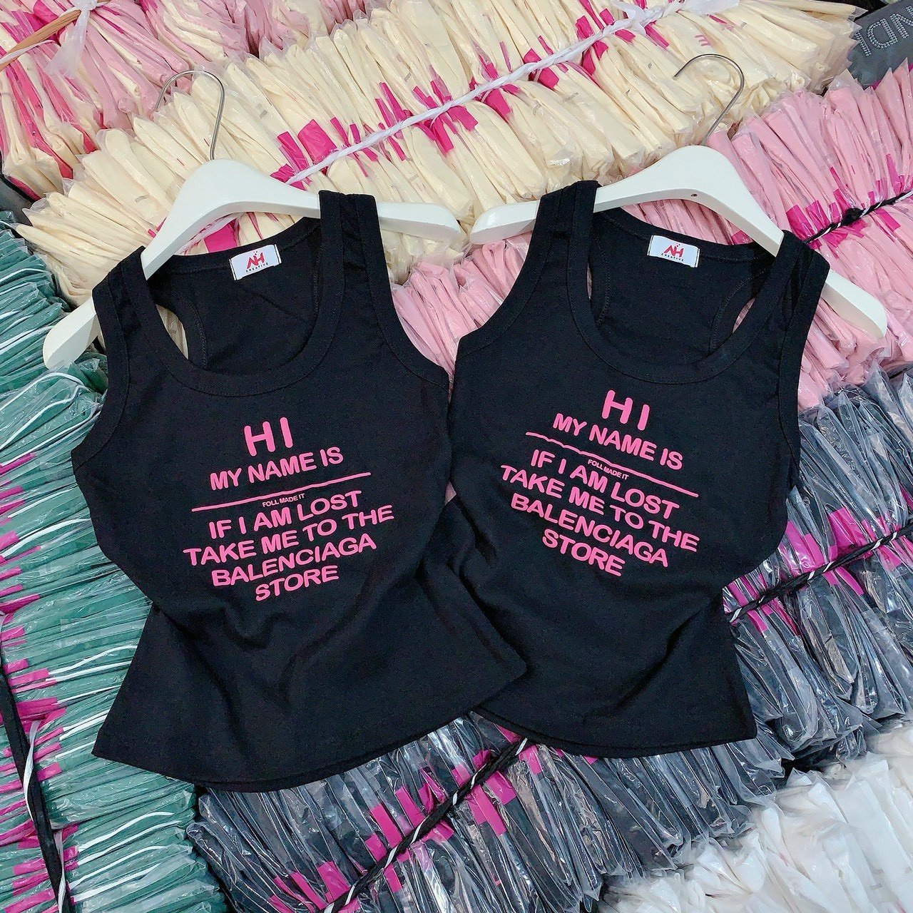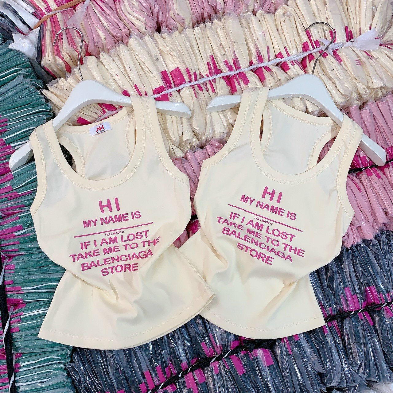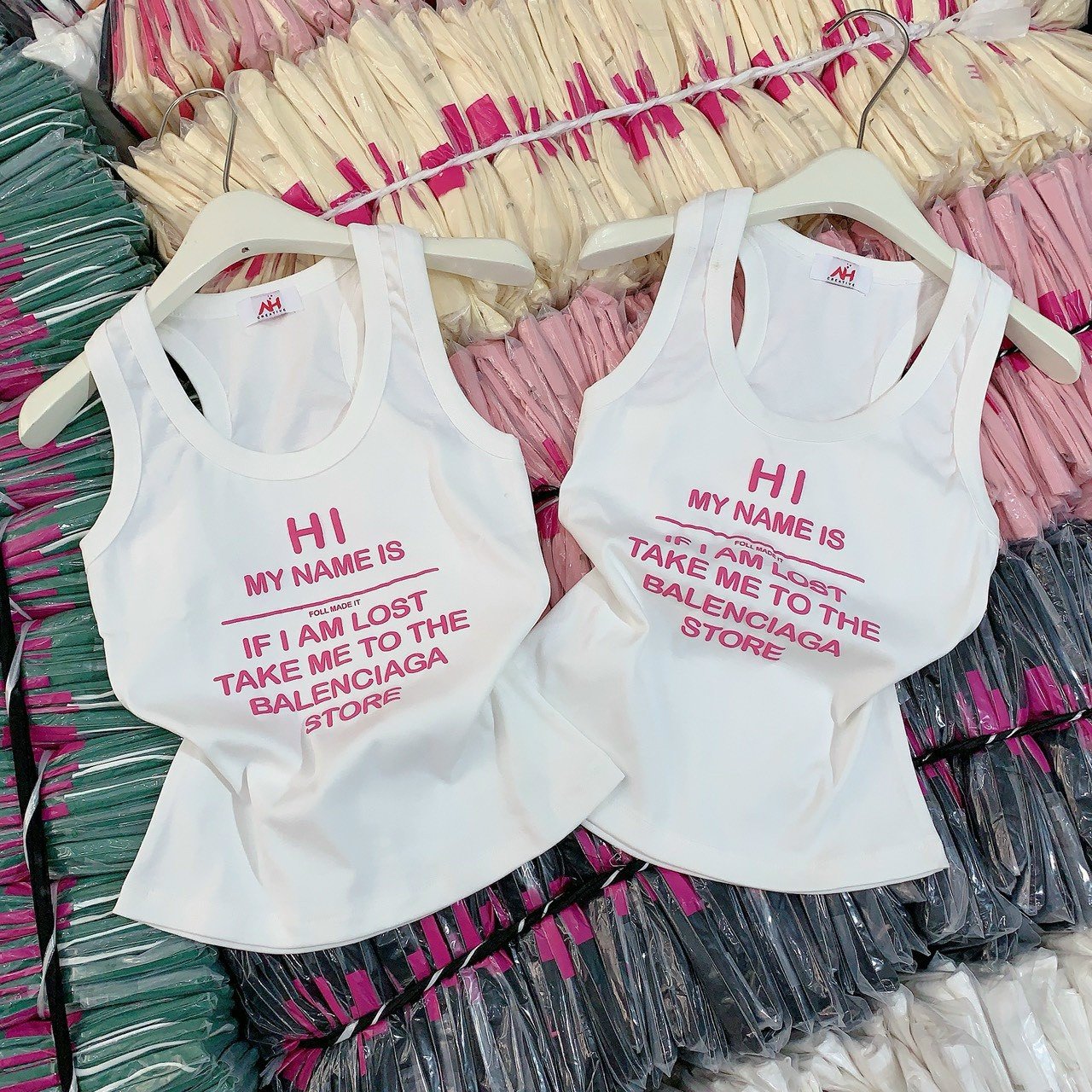 Áo thun nữ sát nách Baby Tee ôm body từ 35kg – 55kg in Chữ HI