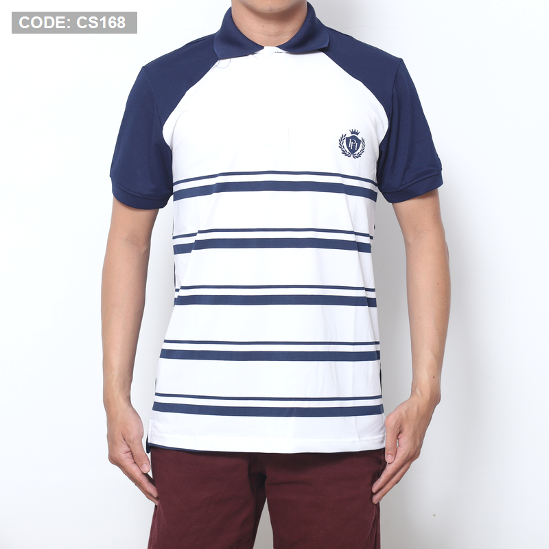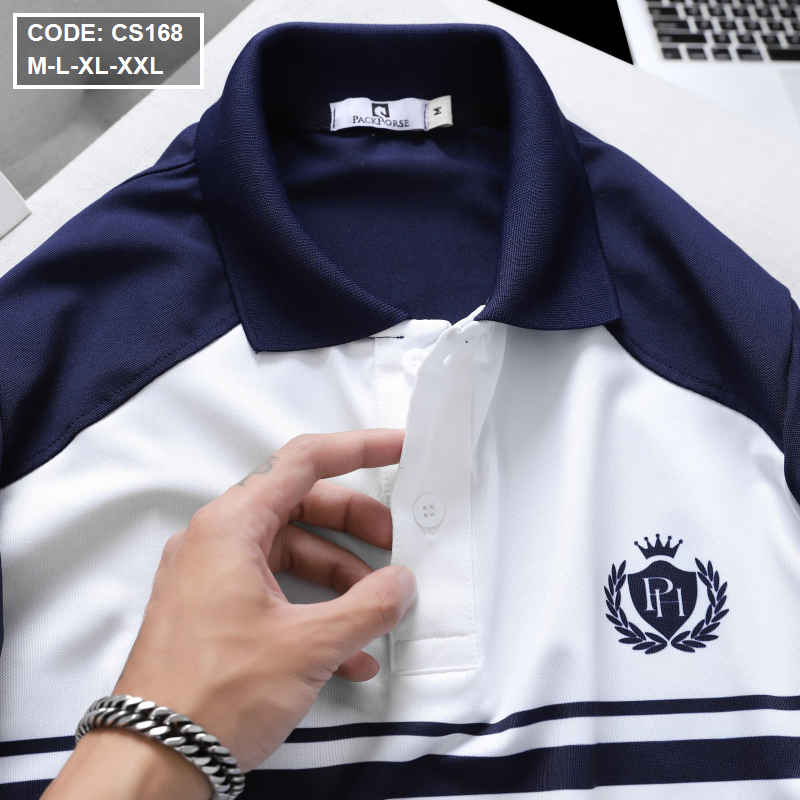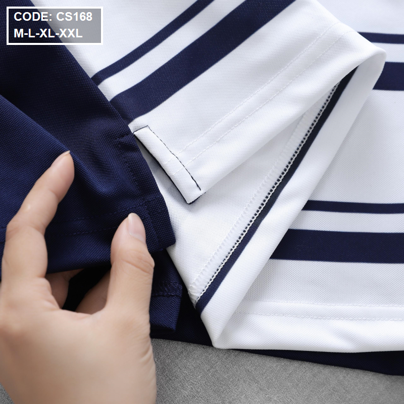 Áo Thun Polo Cá Sấu Thân Phối Sọc In Logo