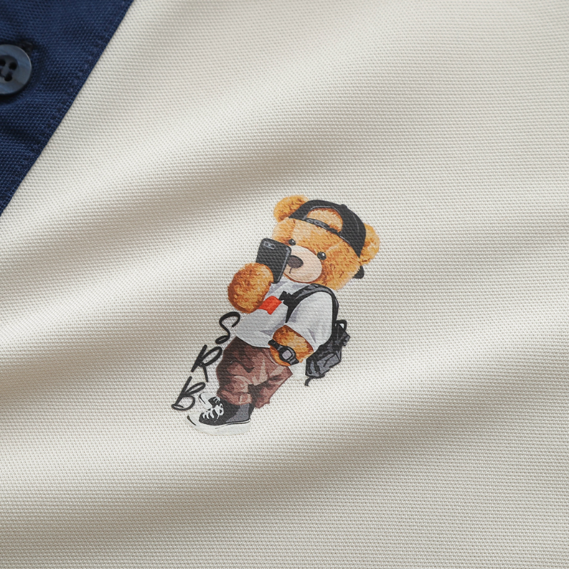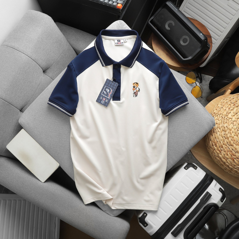 - Logo Gấu thêu nổi bật trên ngực áo, tạo điểm nhấn cá tính, khác biệt hẳn so với Polo basic thường thấy.