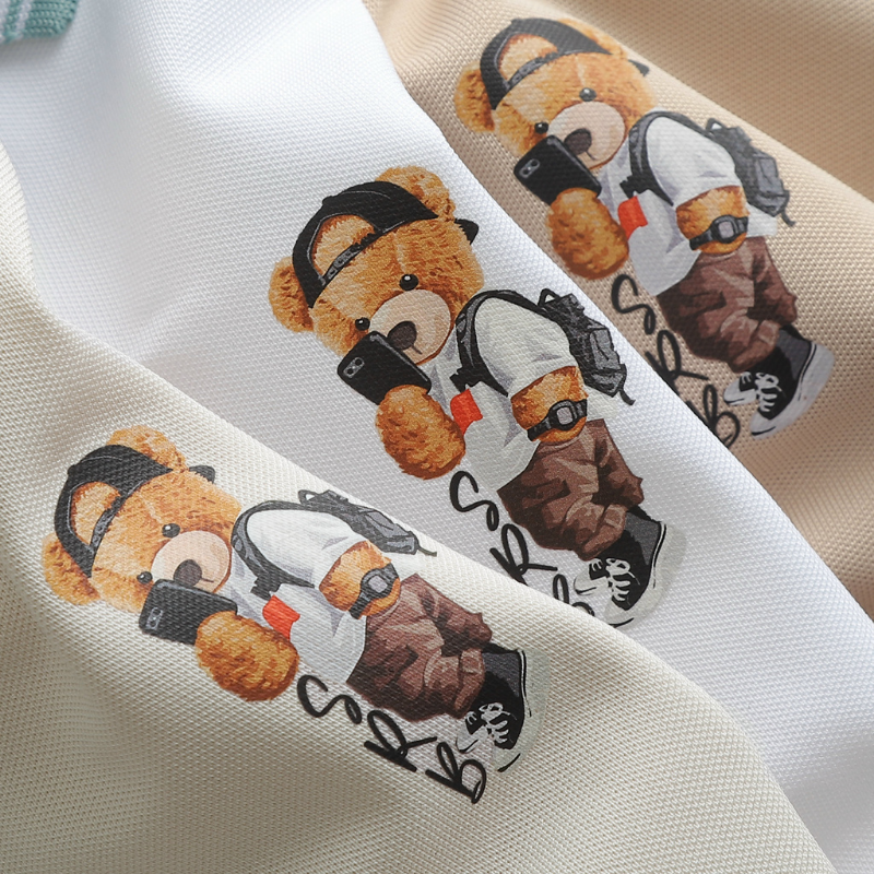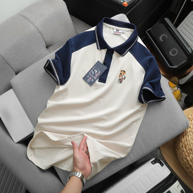 Áo Thun Polo Nam Phối Màu Và In Hình Gấu Trước Ngực BigSize Từ 50-90kg