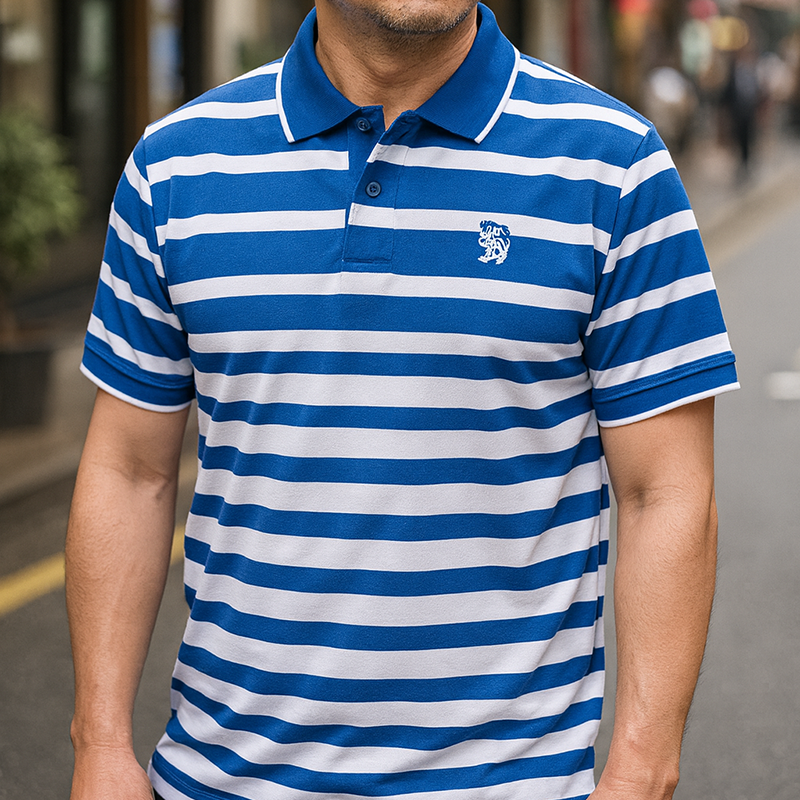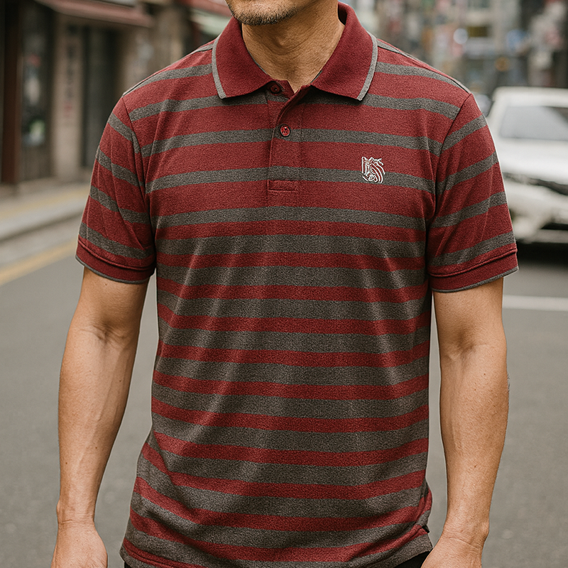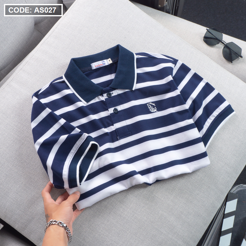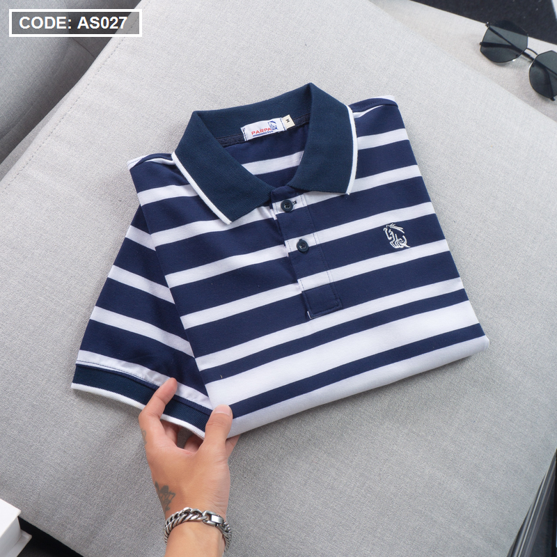 Áo Thun Polo Sọc Ngang Nam Cổ Phối Bo Thêu Logo