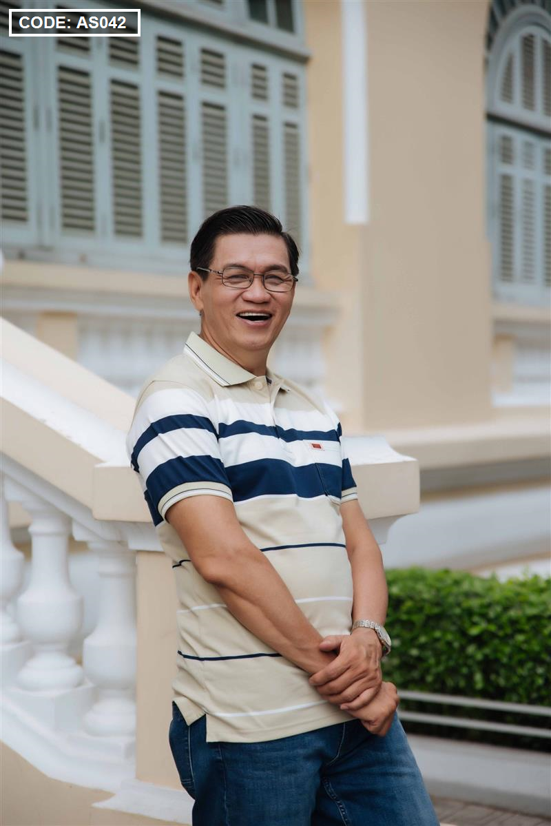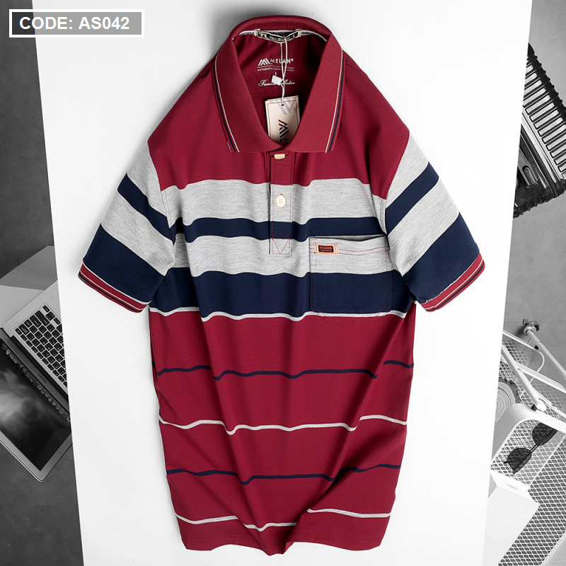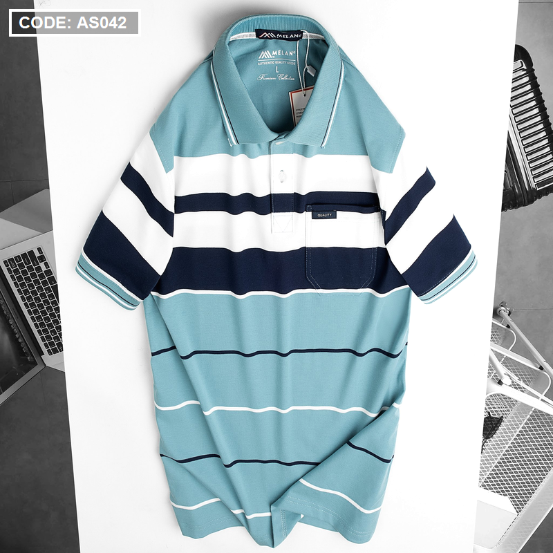 Áo Thun Sọc Nam Trung Niên Cổ Bẻ Có Túi