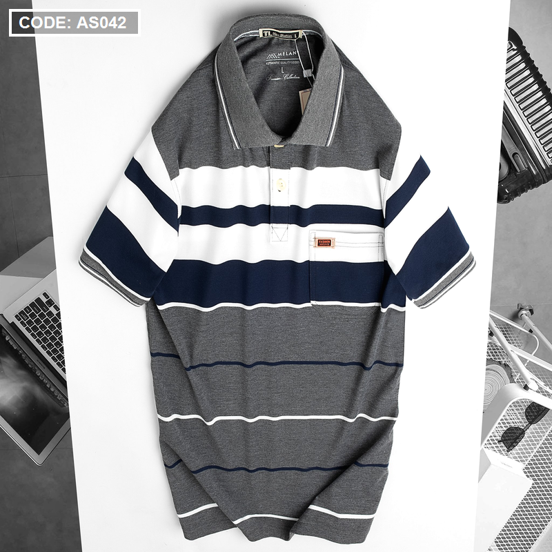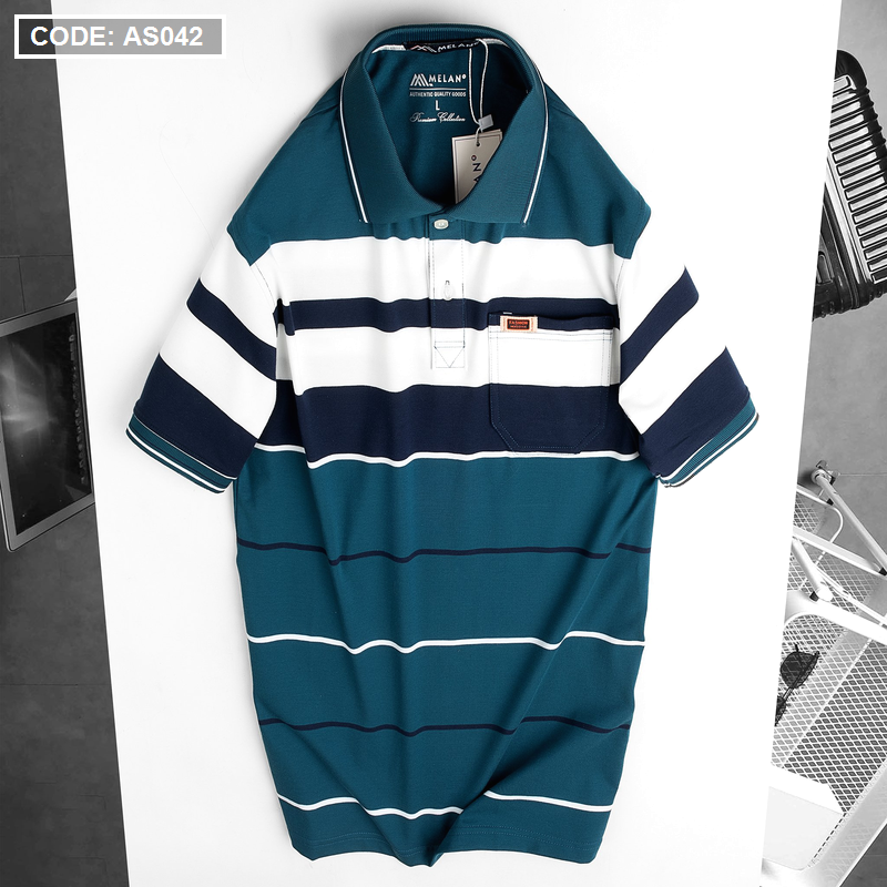 Áo Thun Sọc Nam Trung Niên Cổ Bẻ Có Túi